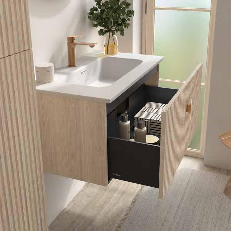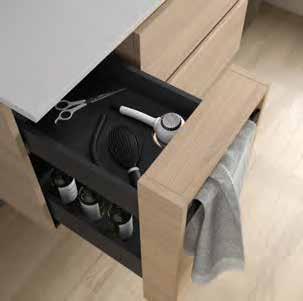 Au ewahrungsschublade plus eine vollständige Innenschublade, ohne Siphonaussparung, bietet ein überraschendes Stauraumvolumen bei kompaktem Maß. San und leicht in der Bewegung dank der V8Schubladen von Grass, nimmt der Benutzer Qualität bei jeder Ö nung wahr.