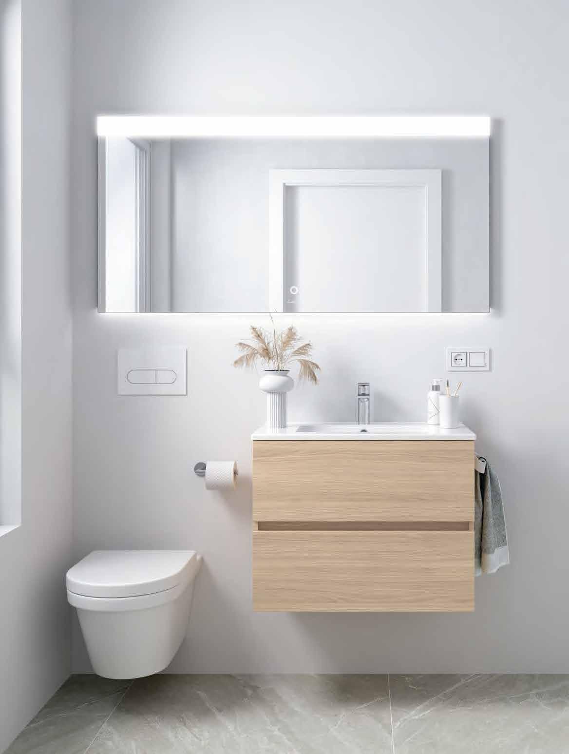 120109Espejo LENA x 2 500 102307Juego sifón reducido CONEX Blanco 56 119871Válvula clicker/abierta ELIA Solid surface blanco mate 93 OCEAN HORIZON 800 ROBLE SIENNA