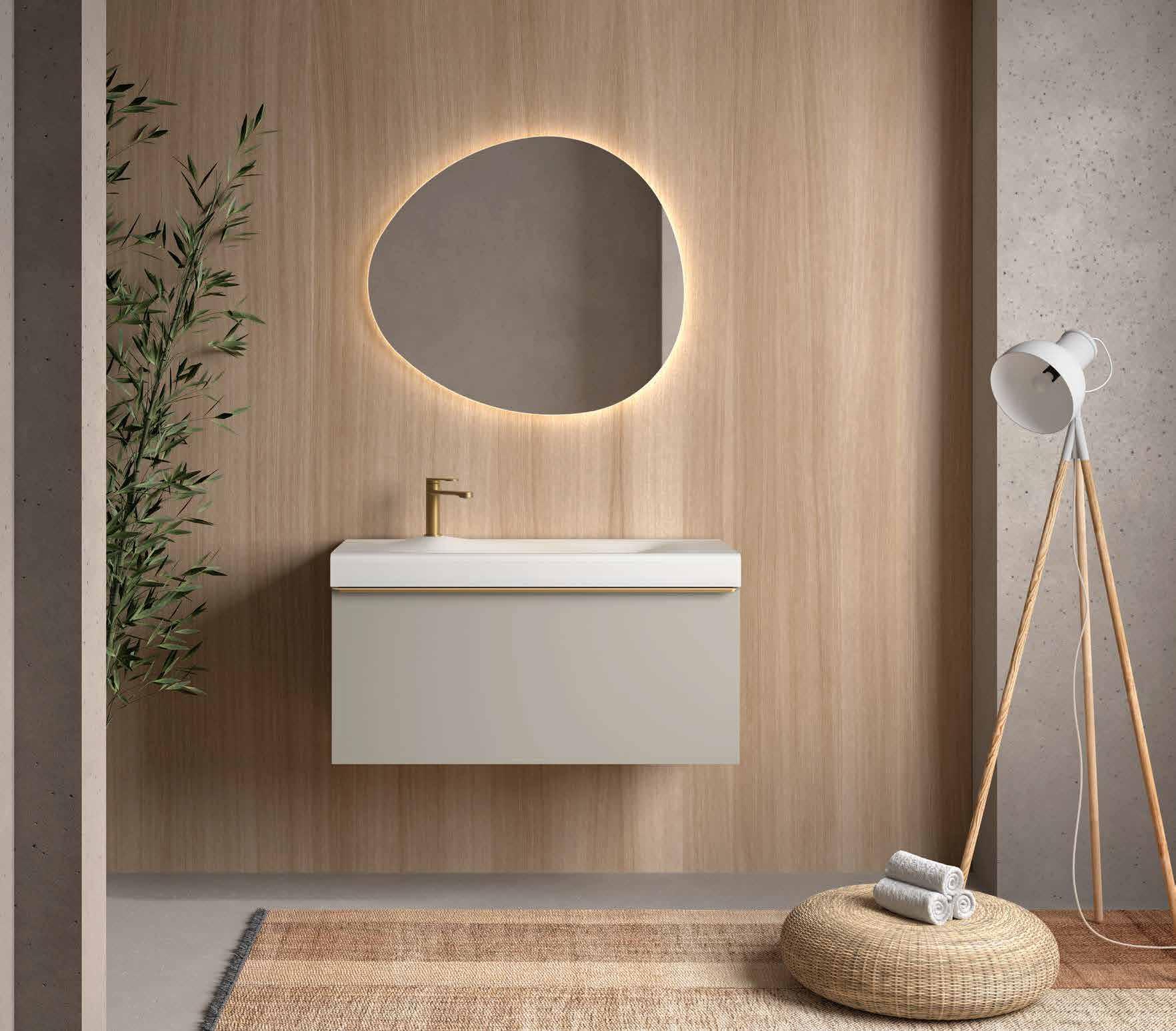 120594Mueble suspendido OCEAN 1000 Moon grey 560 121432Tirador OCEAN 1000 Matt gold 28
