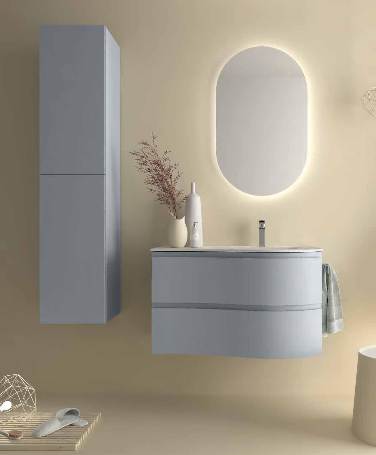 El lavabo Emma, fabricado íntegramente en Solid Surface, corona la composición como un gesto escultórico que celebra la pureza de las formas y el cuidado en cada detalle. Disponible en dos medidas 510 y 710 mm de ancho, ofrece proporciones generosas que refuerzan la presencia del conjunto.