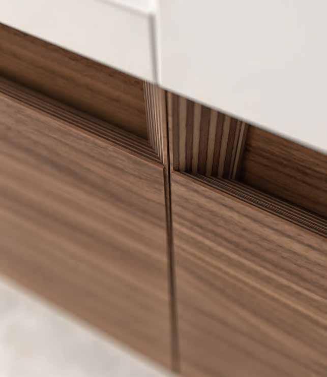 Sus frentes, de nidos por molduras lineales y los acabados en sedosos lacados, crean un juego de volúmenes sereno y so sticado.