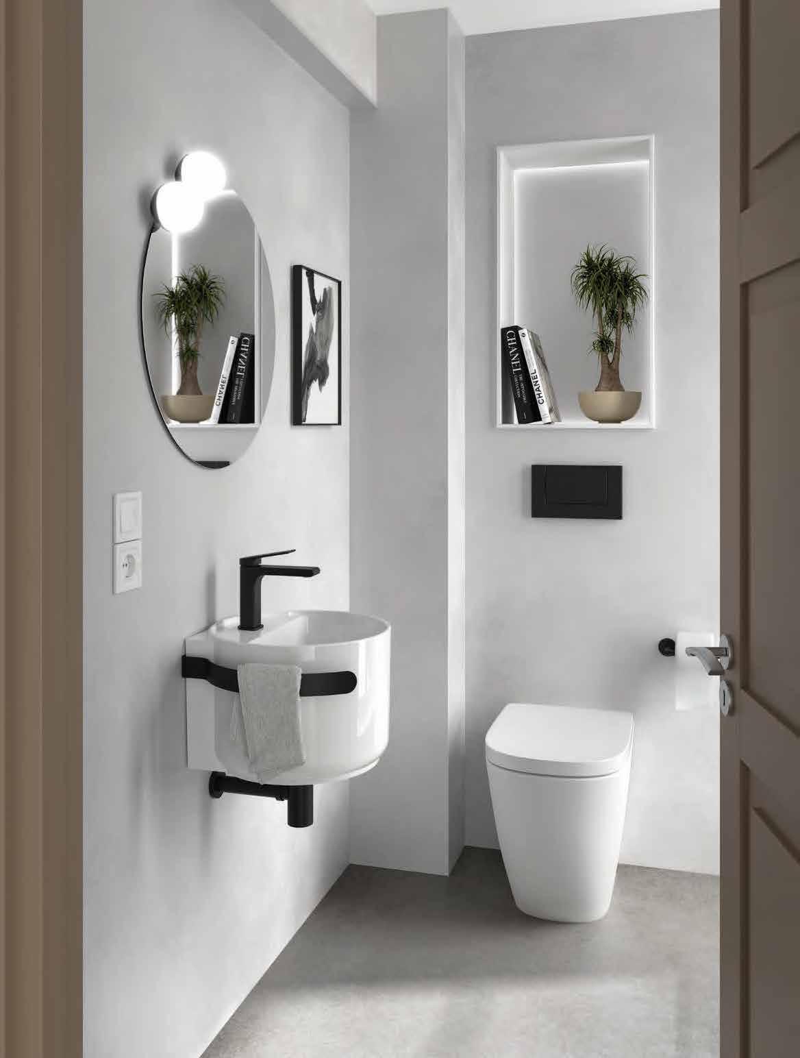 e MAM collection rede nes bathroom elegance through a so , enveloping, and timeless silhouette. Its curved design— inspired by the lightness of Art Déco and the serenity of Nordic minimalism— ows naturally to create spaces that invite wellbeing.