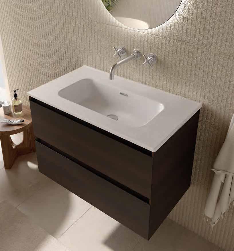 120588Wall hung vanity OCEAN 800 Walnut Maya 662 120723Handle OCEAN 800 Matt black 35 120585Basin OCEAN 800 Matt white solid surface 869