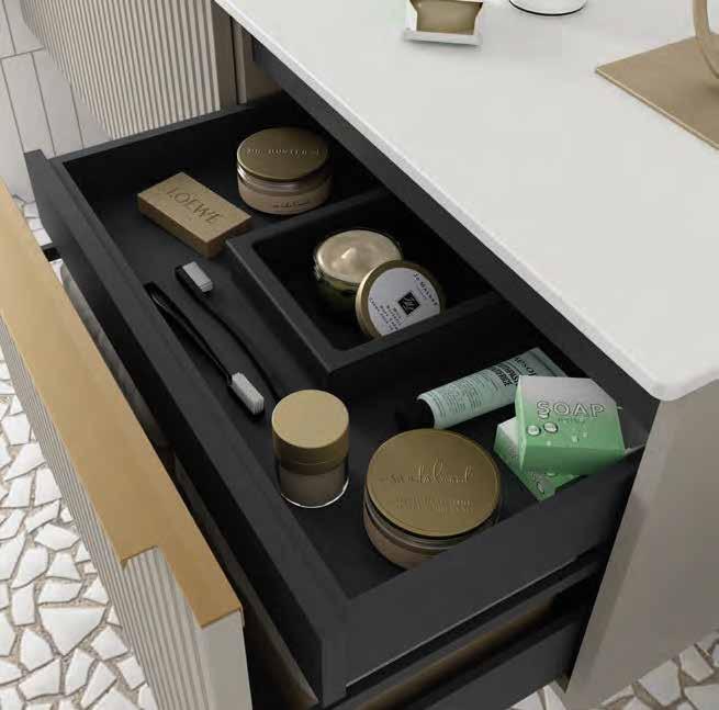 Available in seven carefully curated nishes, the series o ers o set washbasin options thanks to the MAM Coqueta and Alliance auxiliary units, allowing for versatile and functional compositions where beauty and ergonomics merge in perfect harmony.