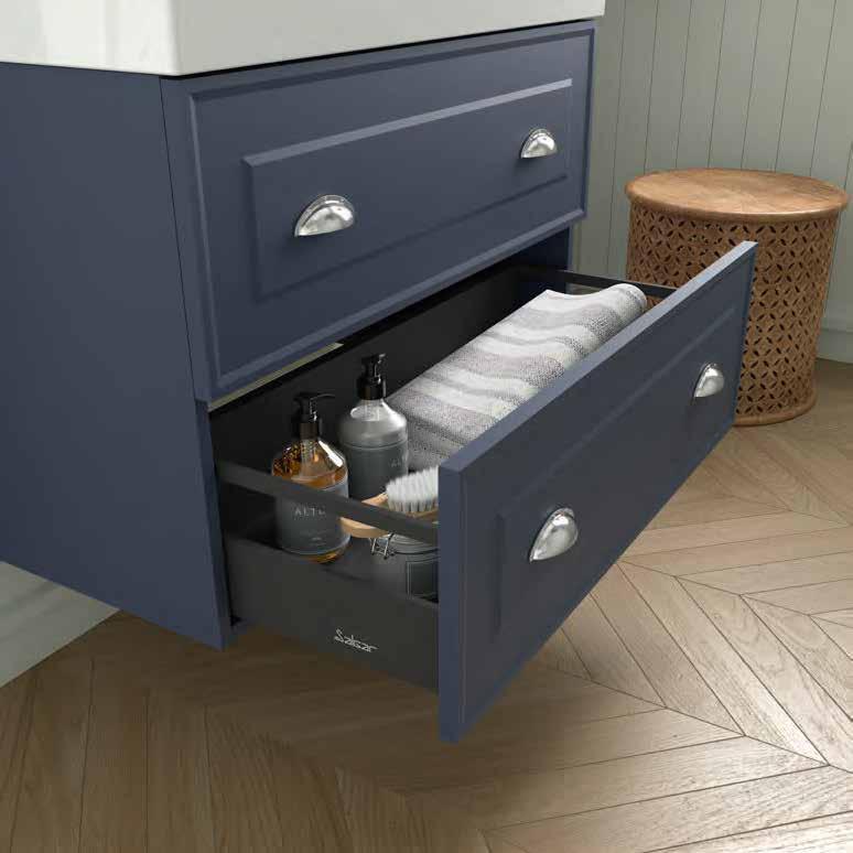 e Emma collection stands out not only for its character and exclusivity, but also for its adaptability. In addition to the Emma washbasin, the series is compatible with all washbasin options in the Salgar catalogue, o ering versatile solutions for di erent styles, spaces, and functional needs.