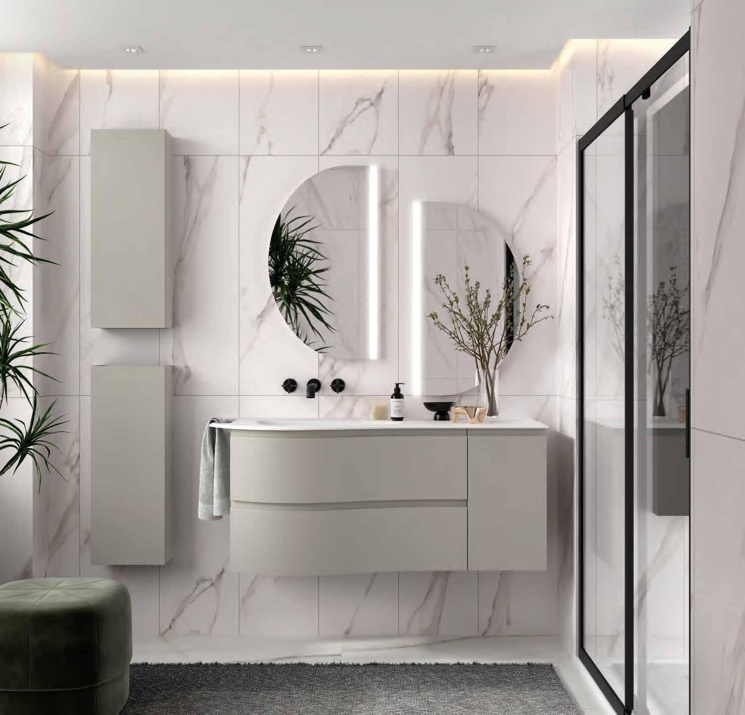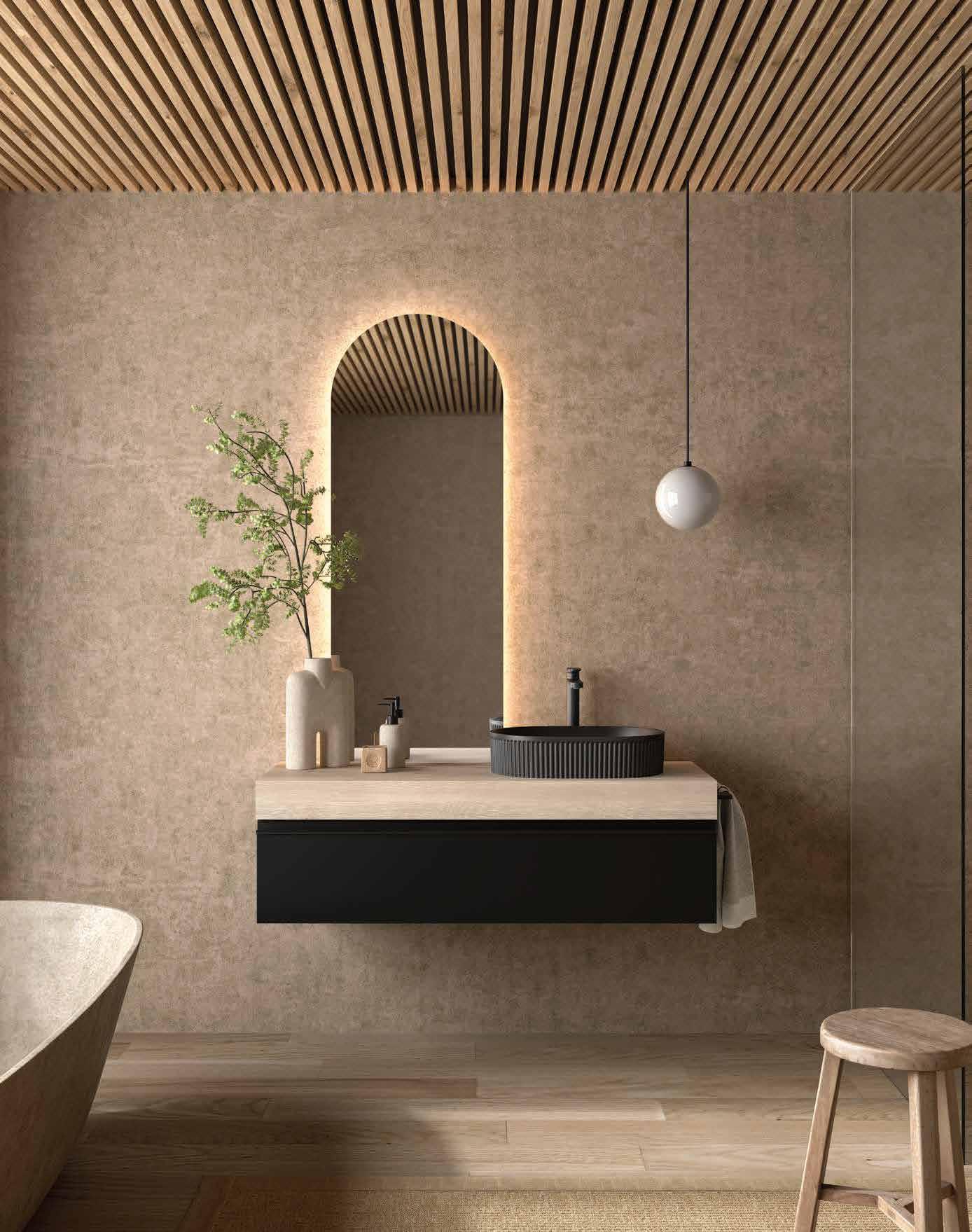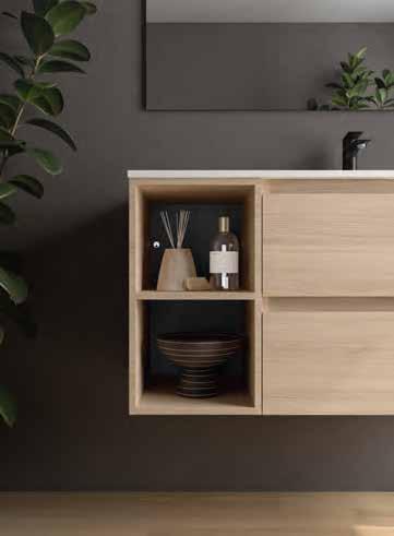 Cra ed from marine-grade birch plywood and nished with premium natural veneer, Mara transforms the bathroom into a space of wellbeing, where design can be felt through the senses.