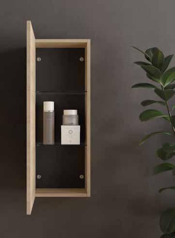 Complete your bathroom with tall unit Renoir , designed with fronts that match the furniture and in the same nishes. It is tted with four height-adjustable glass shelves, adding space and style to your bathroom.