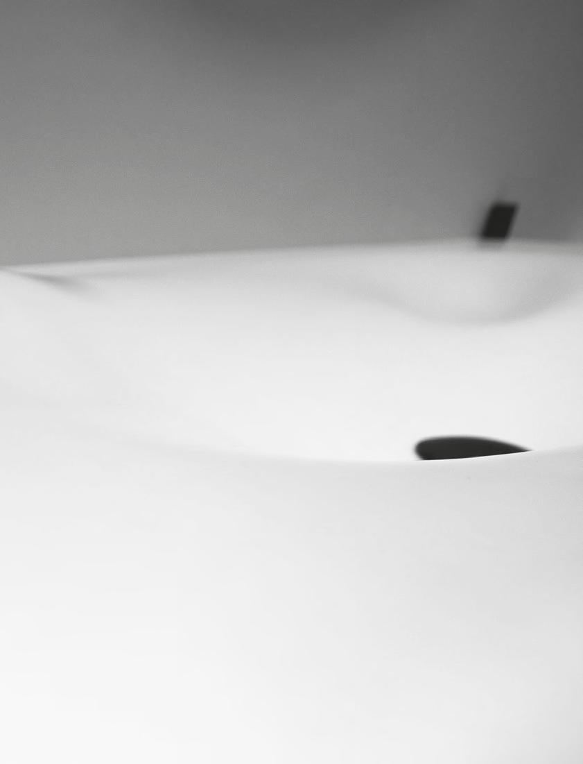 e Ocean basin is engineered with a precise inner curvature to channel water smoothly and controllably, preventing splashes. Its geometry, inspired by the sea’s natural movement, optimizes ow from the faucet and delivers a silent, clean, and harmonious user experience. e ensemble is nished with a minimalist linear handle, serving as a dividing line between liquid and solid elements.