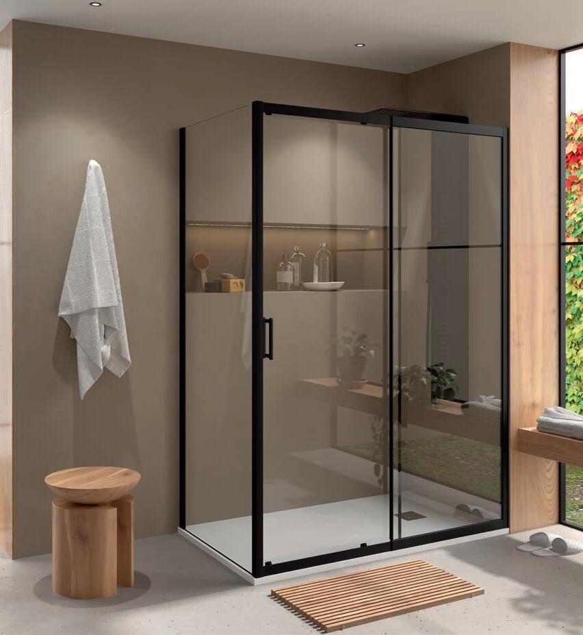 D’angle noir douche en stock AC2 + AC2 PORTE COULISSANTE/FIXES 1/2