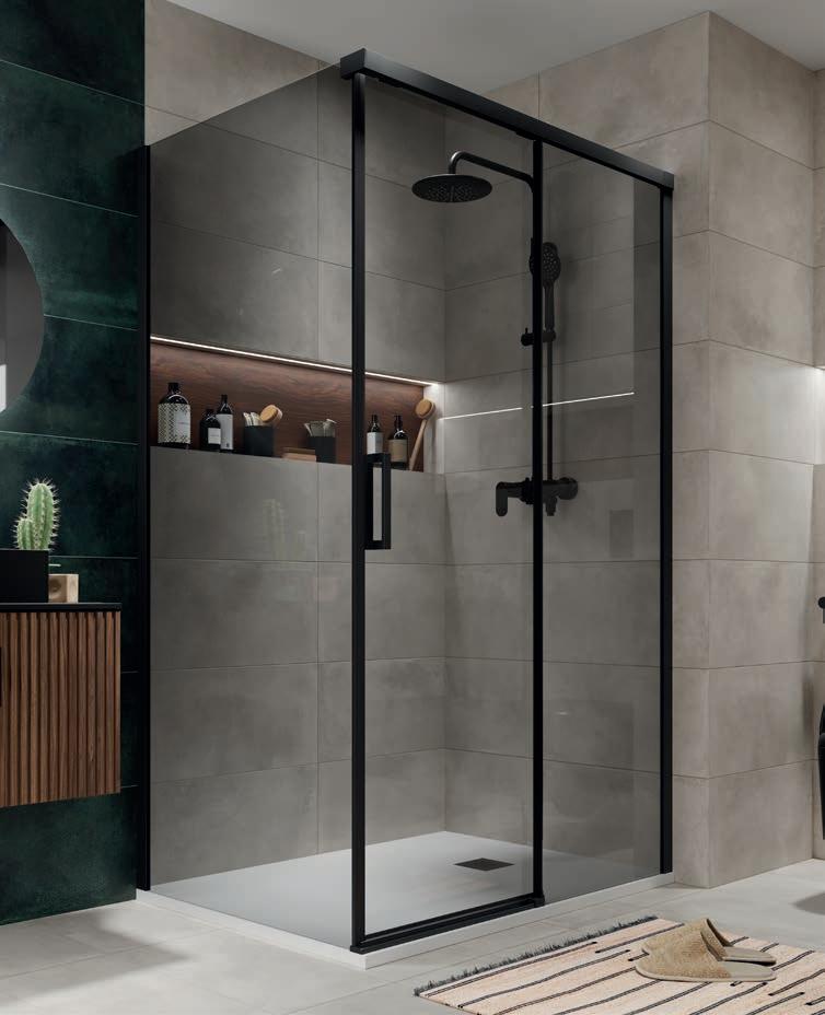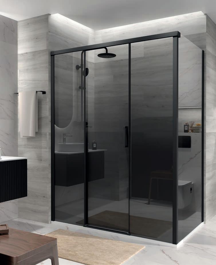 Black corner shower enclosure in stock AC2 + AC2 SLIDING DOORS/FIXED PANELS 1/2