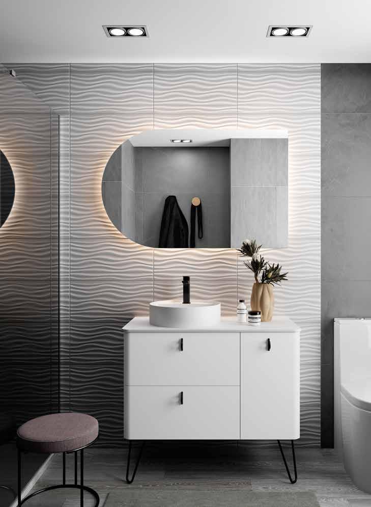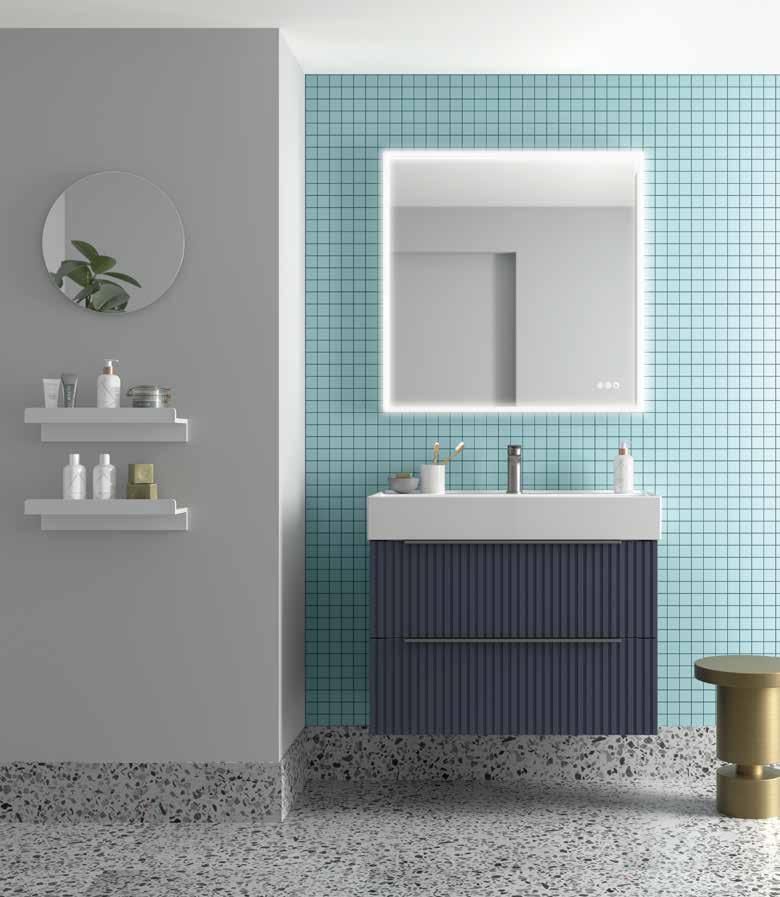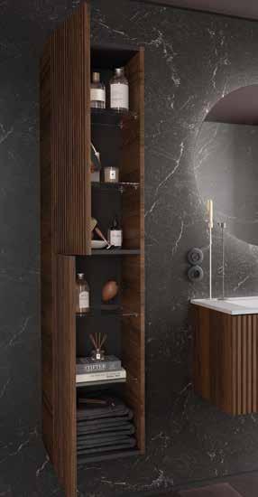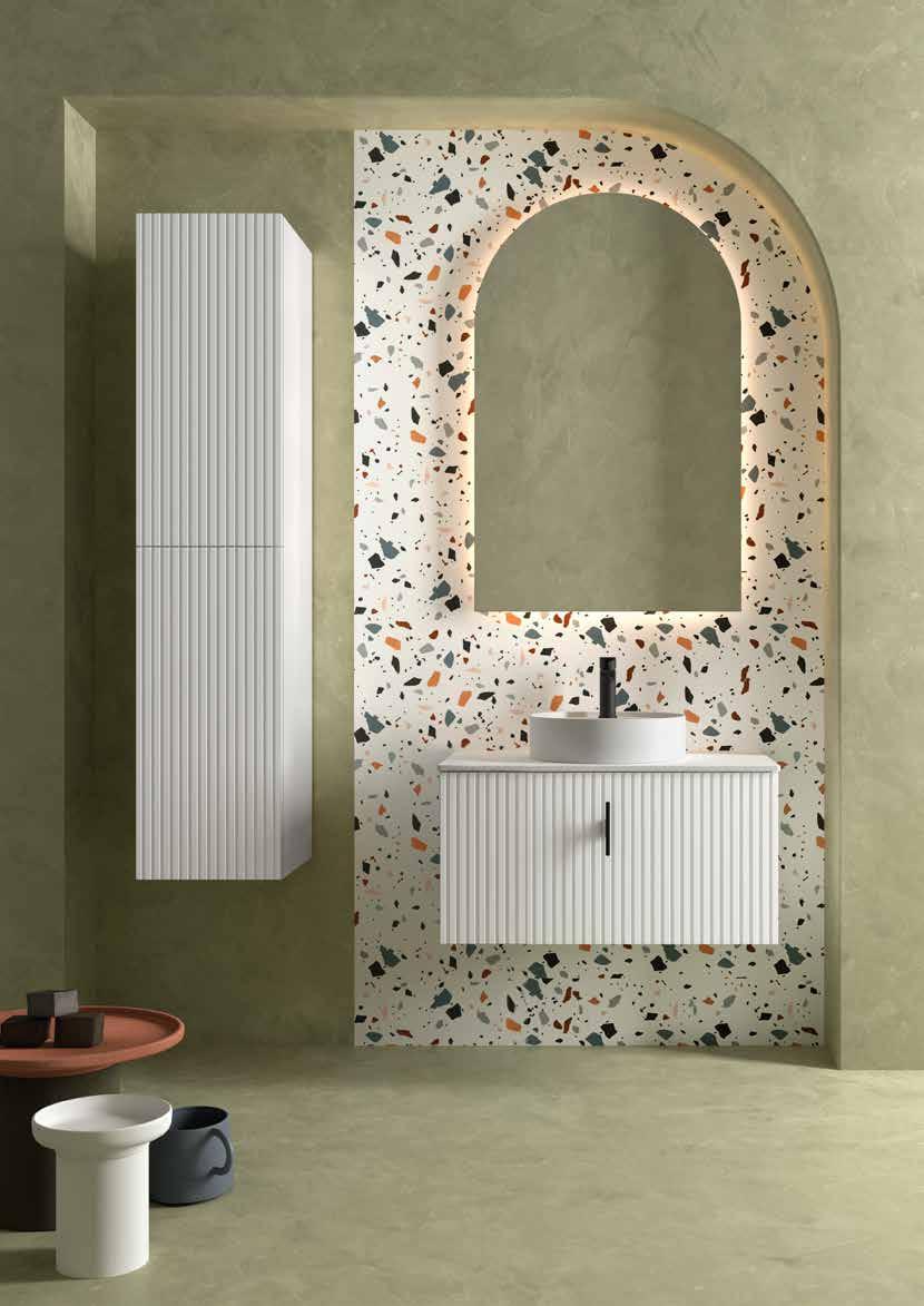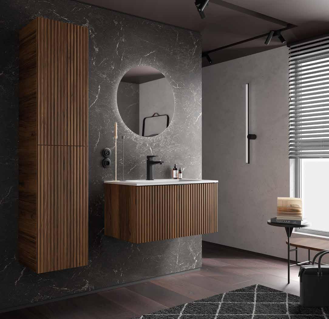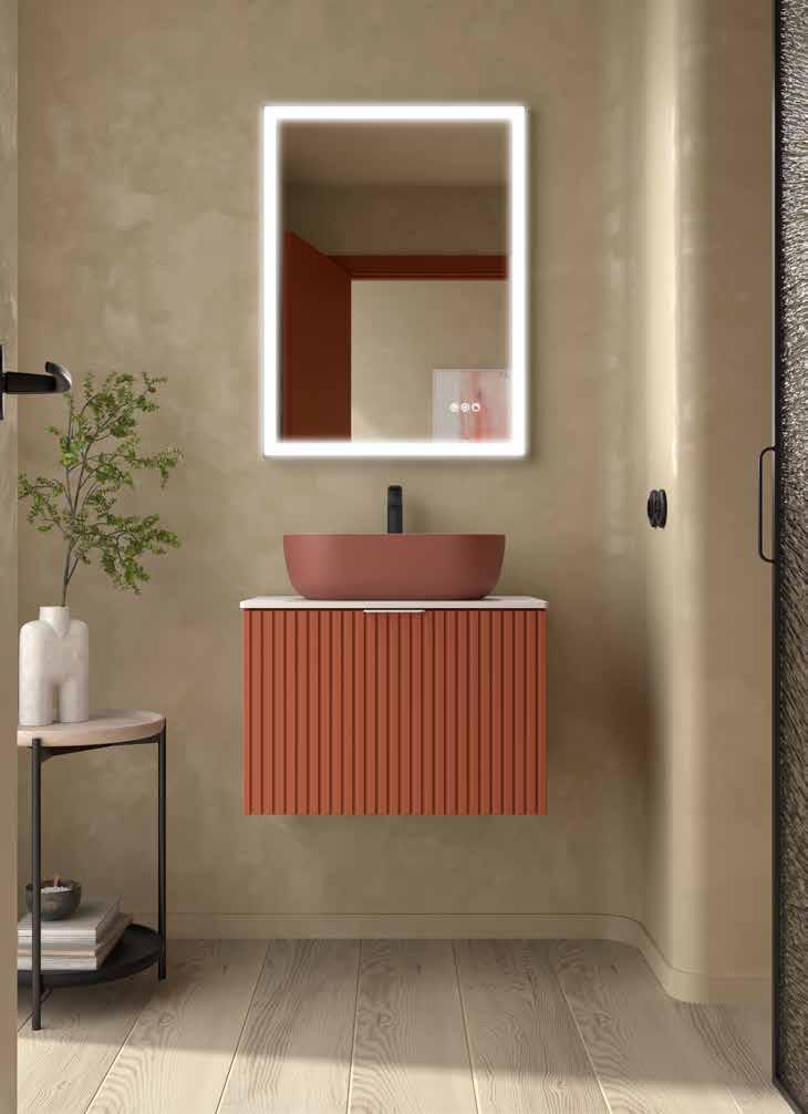 The BIBA collection redefines the contemporary bathroom through a design that combines visual order with tactile sensation. Its linear relief front creates a dynamic and elegant surface that interacts with light and surrounding materials. The silk matte lacquers, applied through a robotized water-based solvent system, provide purity, softness, and an impeccable finish that reflects SALGAR’s commitment to technical quality and sustainability.