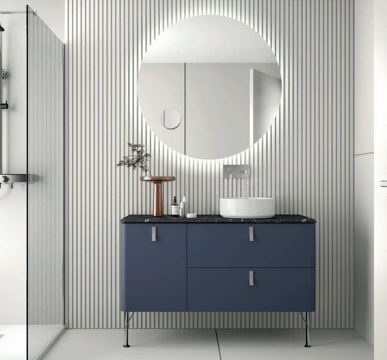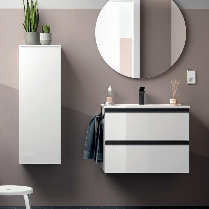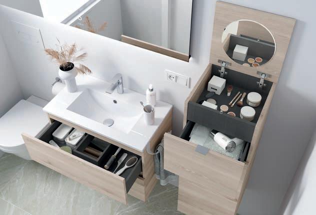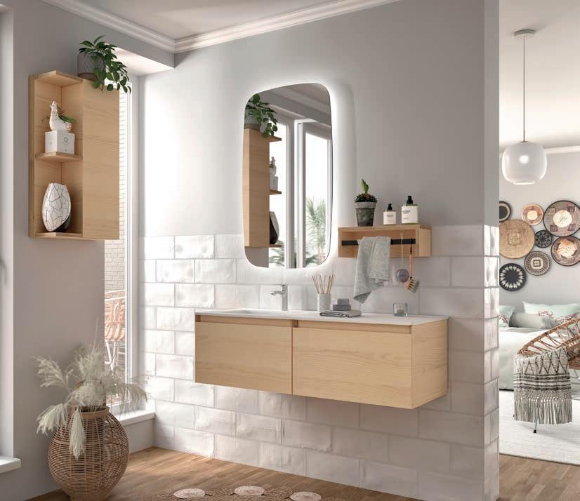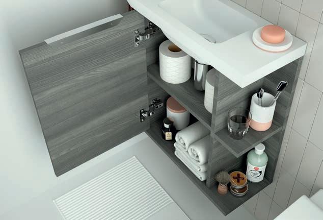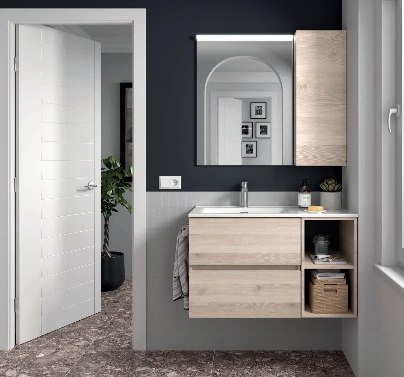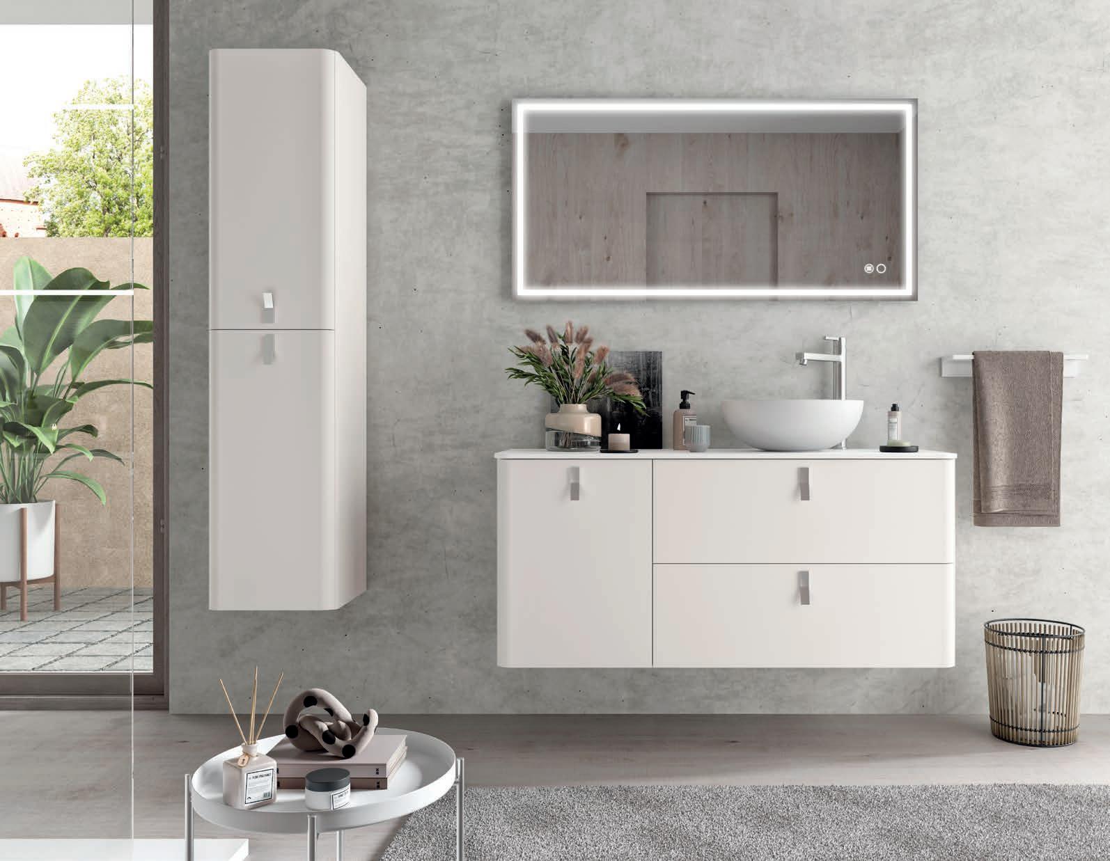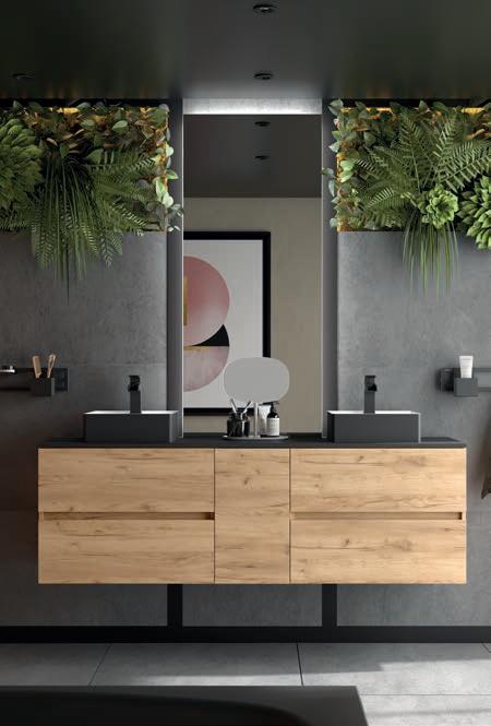 Resistant to cleaning products and disinfectants Bespoken Dirt repellent Lock brake Without handle Exterior handle integrated handle Reversible Runners Grass Runners Hettich Spacer included Under sink insert drawer Push system drawers Push system doors Multilayer laminated board Metal drawer Total extraction Extraction plus Wooden drawer MDF board Particle board Natural wood finish Matt lacquer finish Gloss lacquer finish Laminate board finish Boardwith 3D finish No need for drilling Hard-wearing adhesive fixing IP 44 Horizontal/ Vertical Mirror with fixing Low consumption Backlit mirror Work lighting Sensor on/off Sensor antifog Rotating mirror