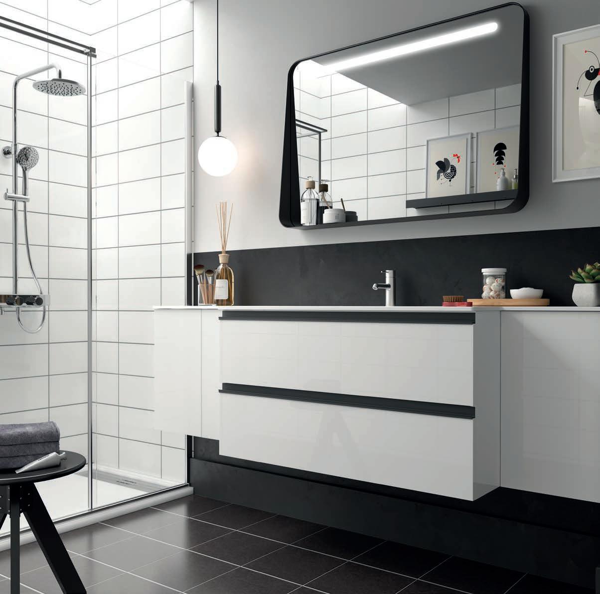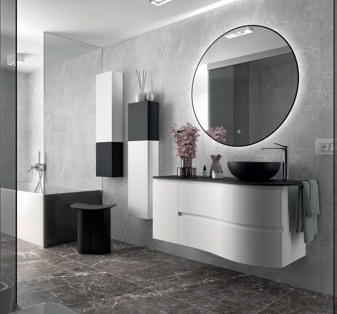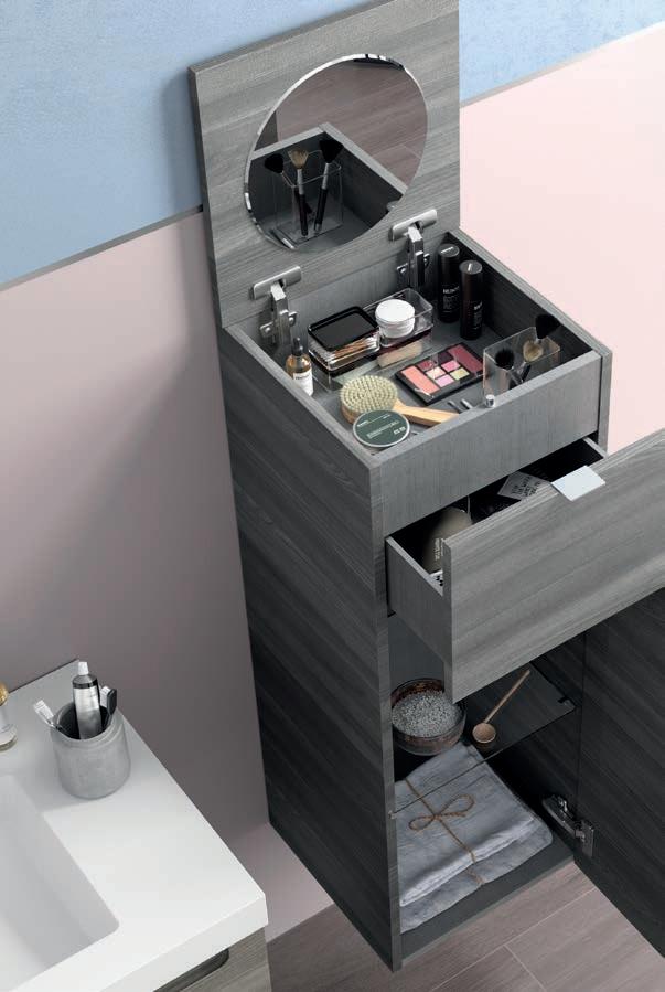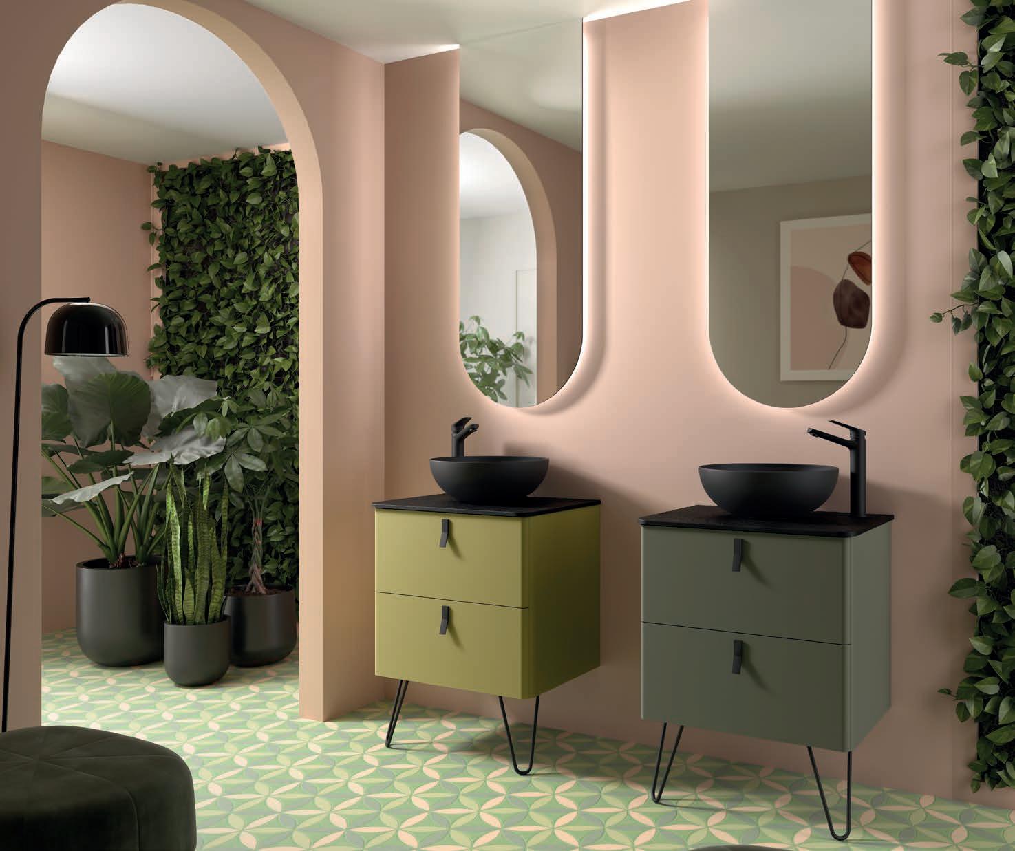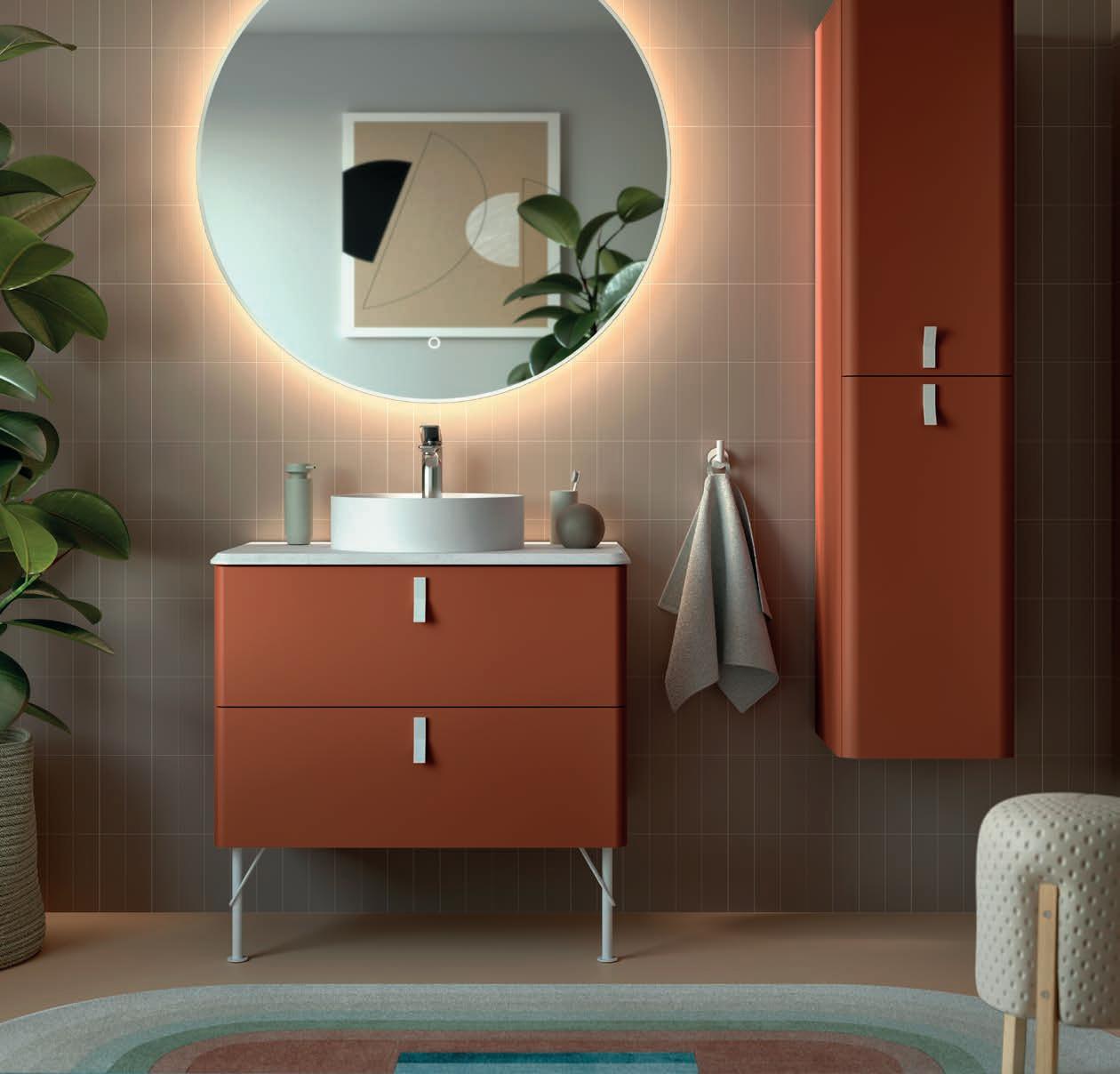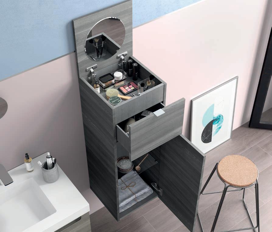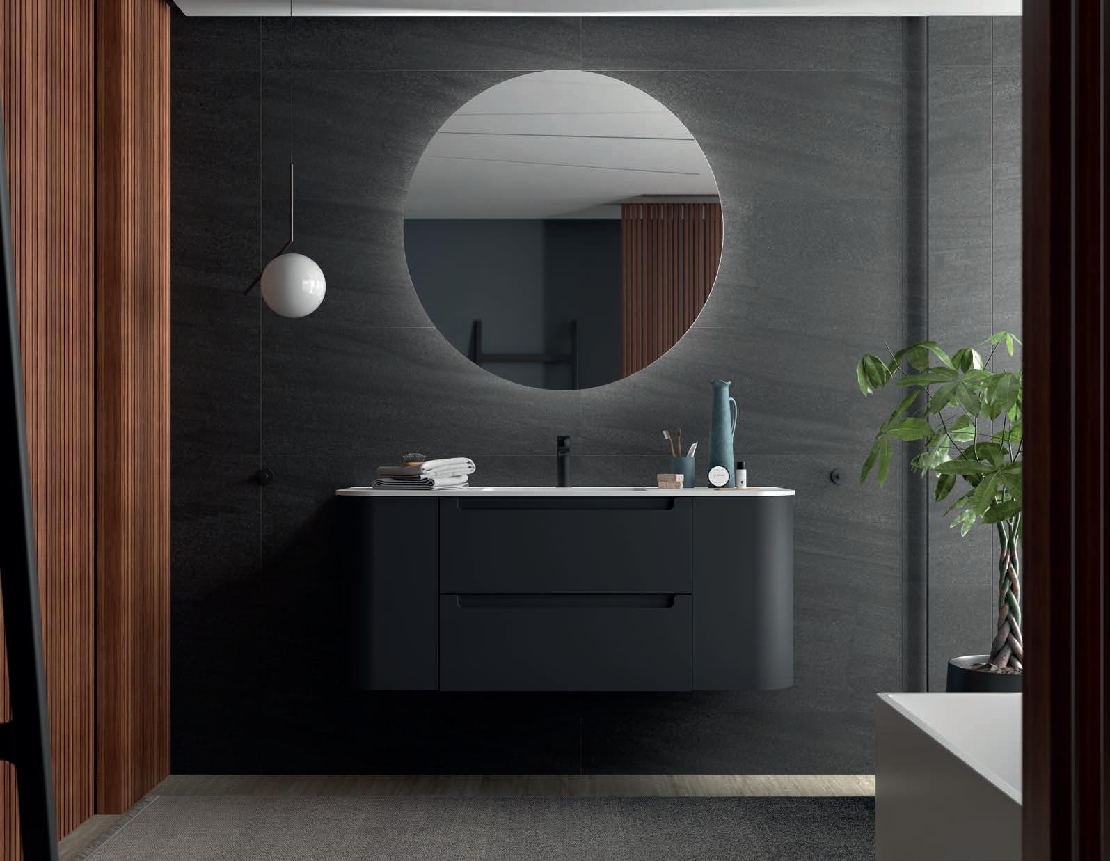 Resistant to cleaning products and disinfectants Bespoken Dirt repellent Lock brake Without handle Exterior handle integrated handle Reversible Runners Grass Runners Hettich Spacer included Under sink insert drawer Push system drawers Push system doors Multilayer laminated board Metal drawer Total extraction Extraction plus Wooden drawer MDF board Particle board Natural wood finish Matt lacquer finish Gloss lacquer finish Laminate board finish Boardwith 3D finish No need for drilling Hard-wearing adhesive fixing IP 44 Horizontal/ Vertical Mirror with fixing Low consumption Backlit mirror Work lighting Sensor on/off Sensor antifog Rotating mirror