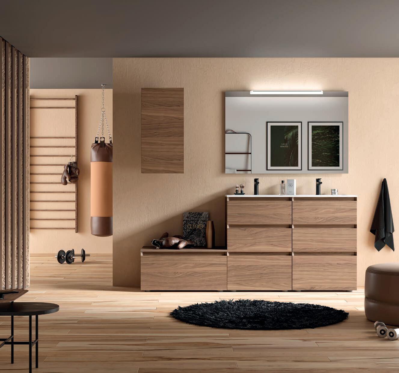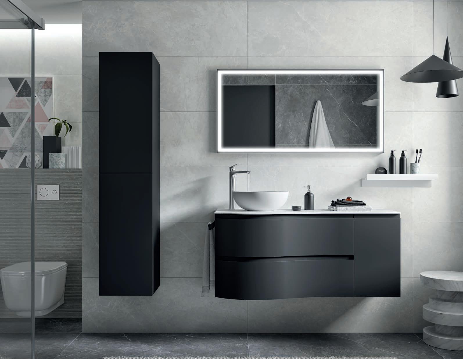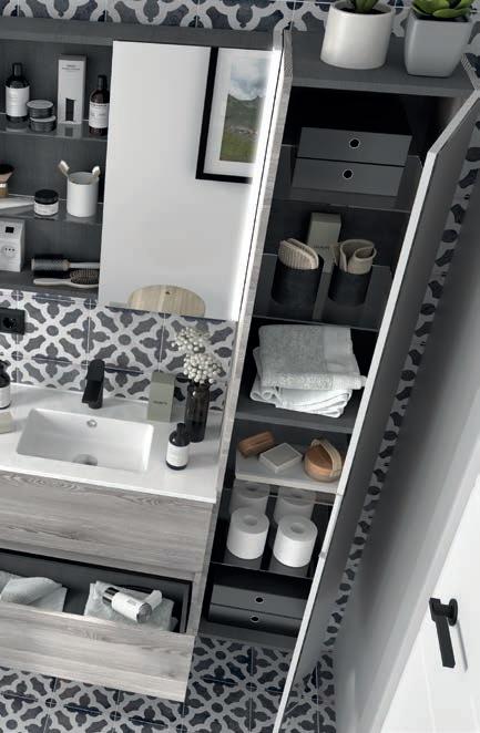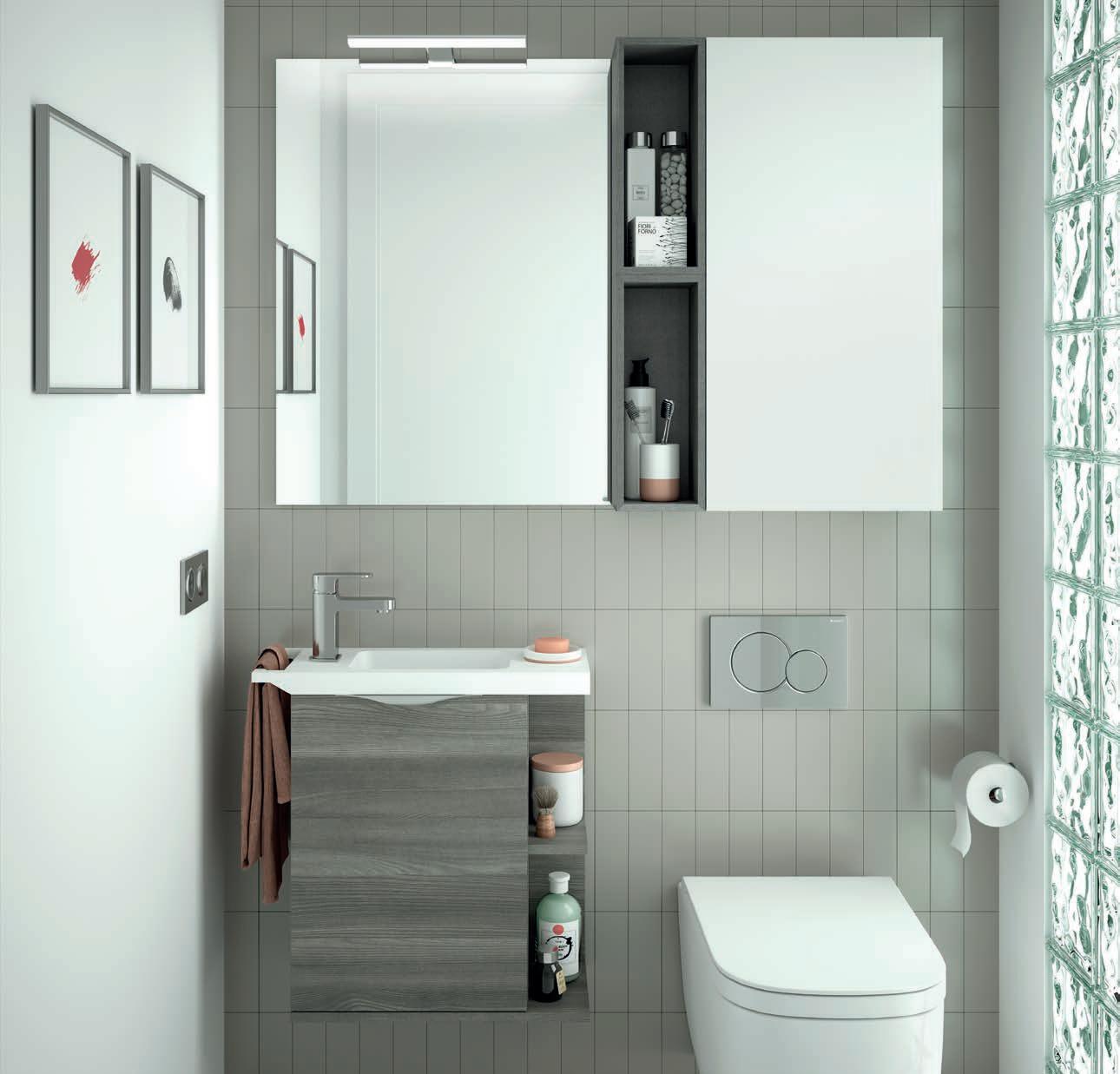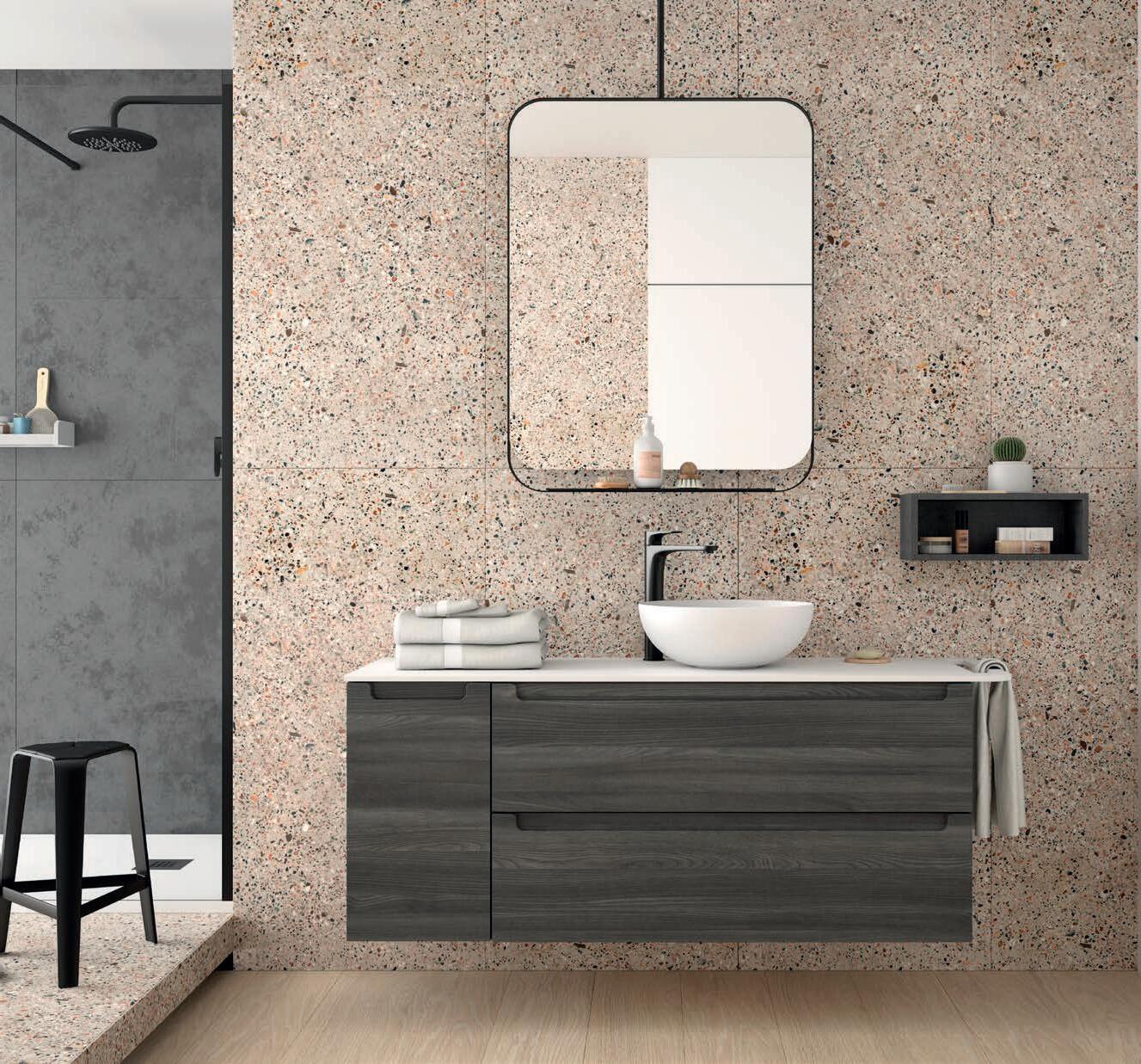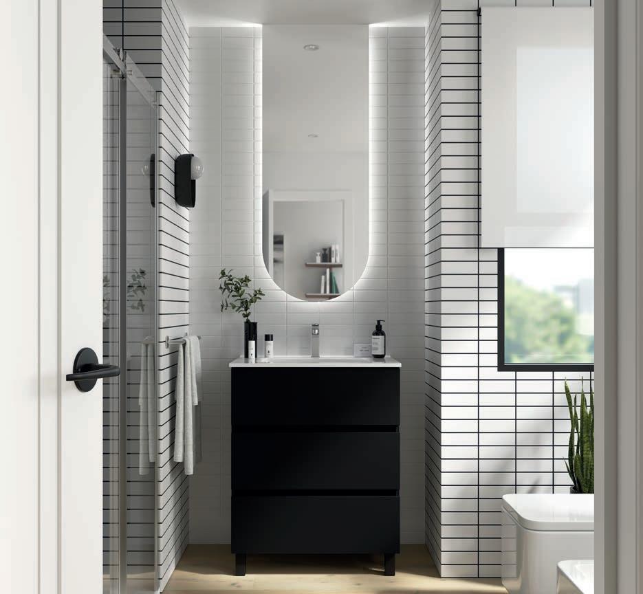 Resistant to cleaning products and disinfectants Bespoken Dirt repellent Lock brake Without handle Exterior handle integrated handle Reversible Runners Grass Runners Hettich Spacer included Under sink insert drawer Push system drawers Push system doors Multilayer laminated board Metal drawer Total extraction Extraction plus Wooden drawer MDF board Particle board Natural wood finish Matt lacquer finish Gloss lacquer finish Laminate board finish Boardwith 3D finish No need for drilling Hard-wearing adhesive fixing IP 44 Horizontal/ Vertical Mirror with fixing Low consumption Backlit mirror Work lighting Sensor on/off Sensor antifog Rotating mirror