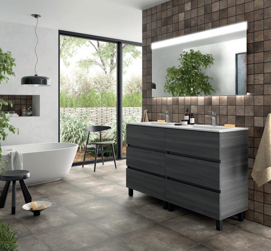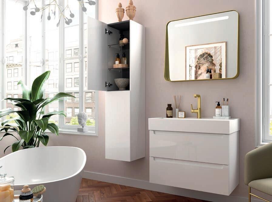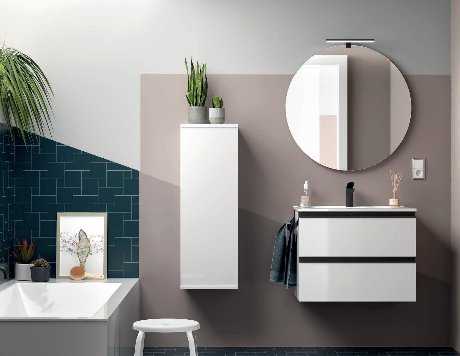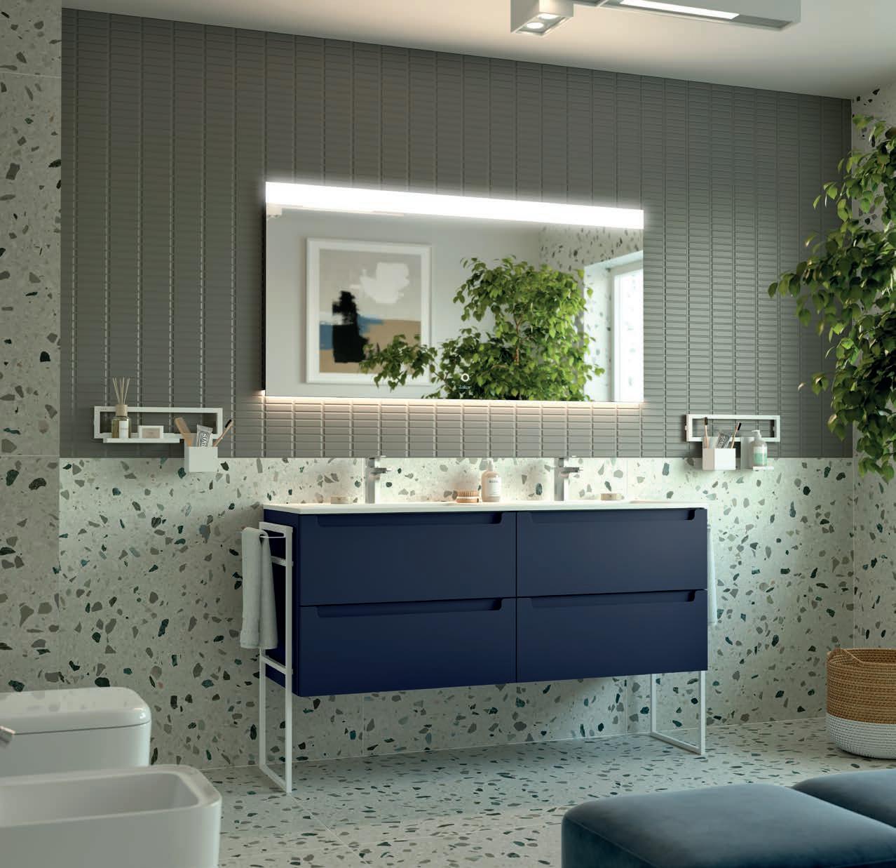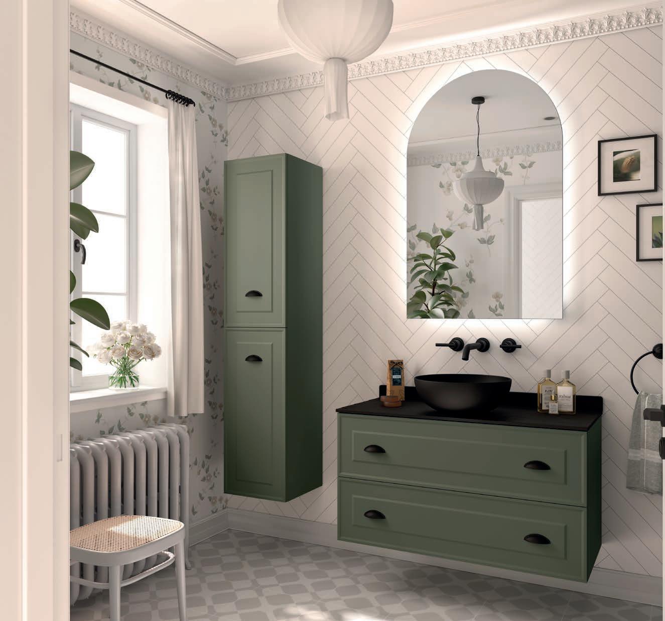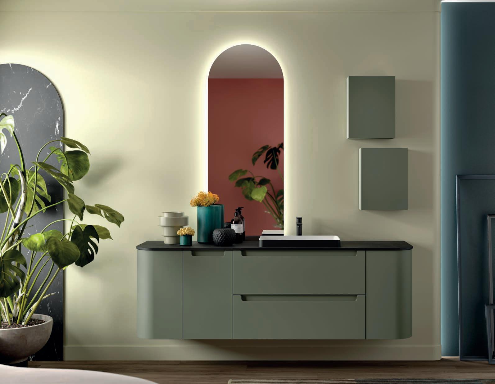 Resistant to cleaning products and disinfectants Bespoken Dirt repellent Lock brake Without handle Exterior handle integrated handle Reversible Runners Grass Runners Hettich Spacer included Under sink insert drawer Push system drawers Push system doors Multilayer laminated board Metal drawer Total extraction Extraction plus Wooden drawer MDF board Particle board Natural wood finish Matt lacquer finish Gloss lacquer finish Laminate board finish Boardwith 3D finish No need for drilling Hard-wearing adhesive fixing IP 44 Horizontal/ Vertical Mirror with fixing Low consumption Backlit mirror Work lighting Sensor on/off Sensor antifog Rotating mirror