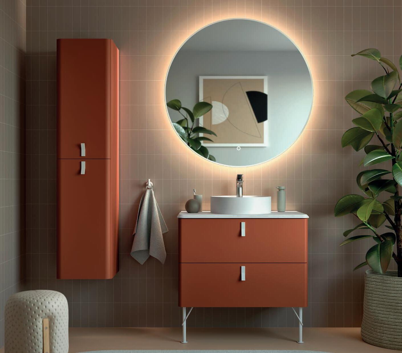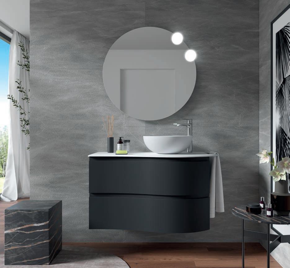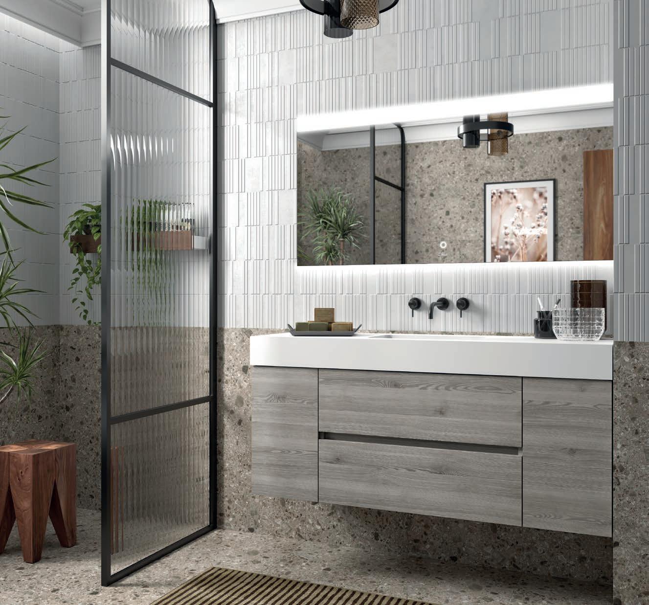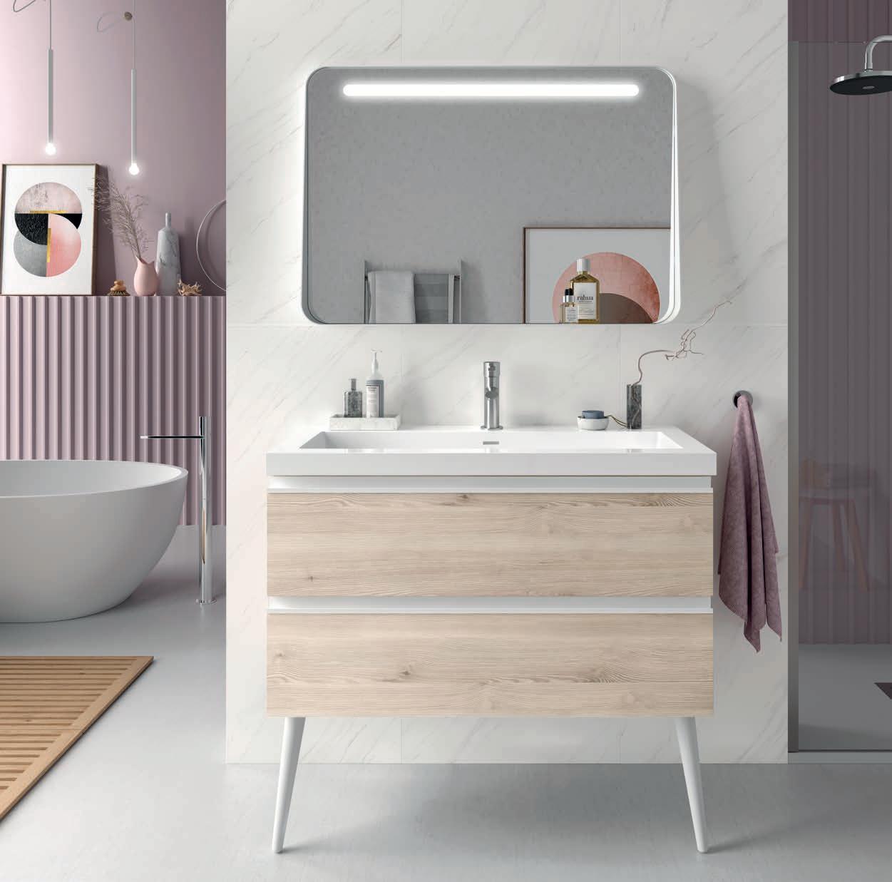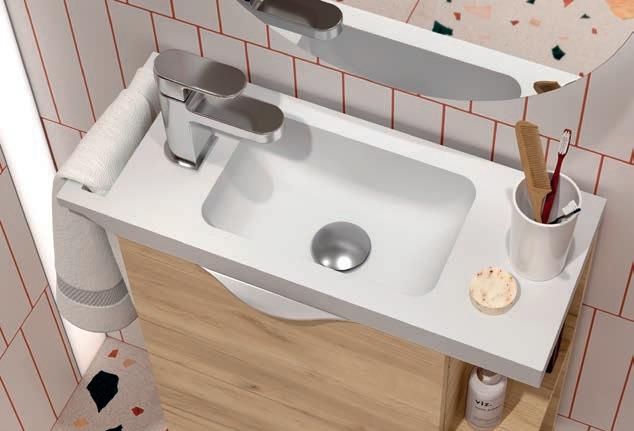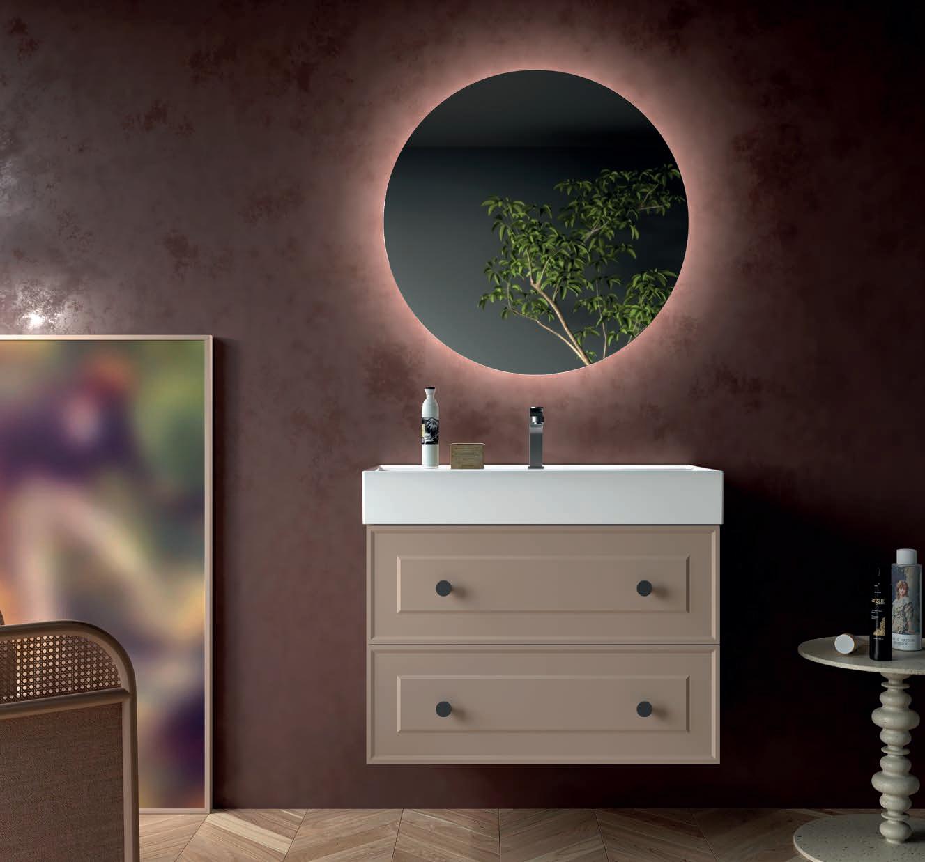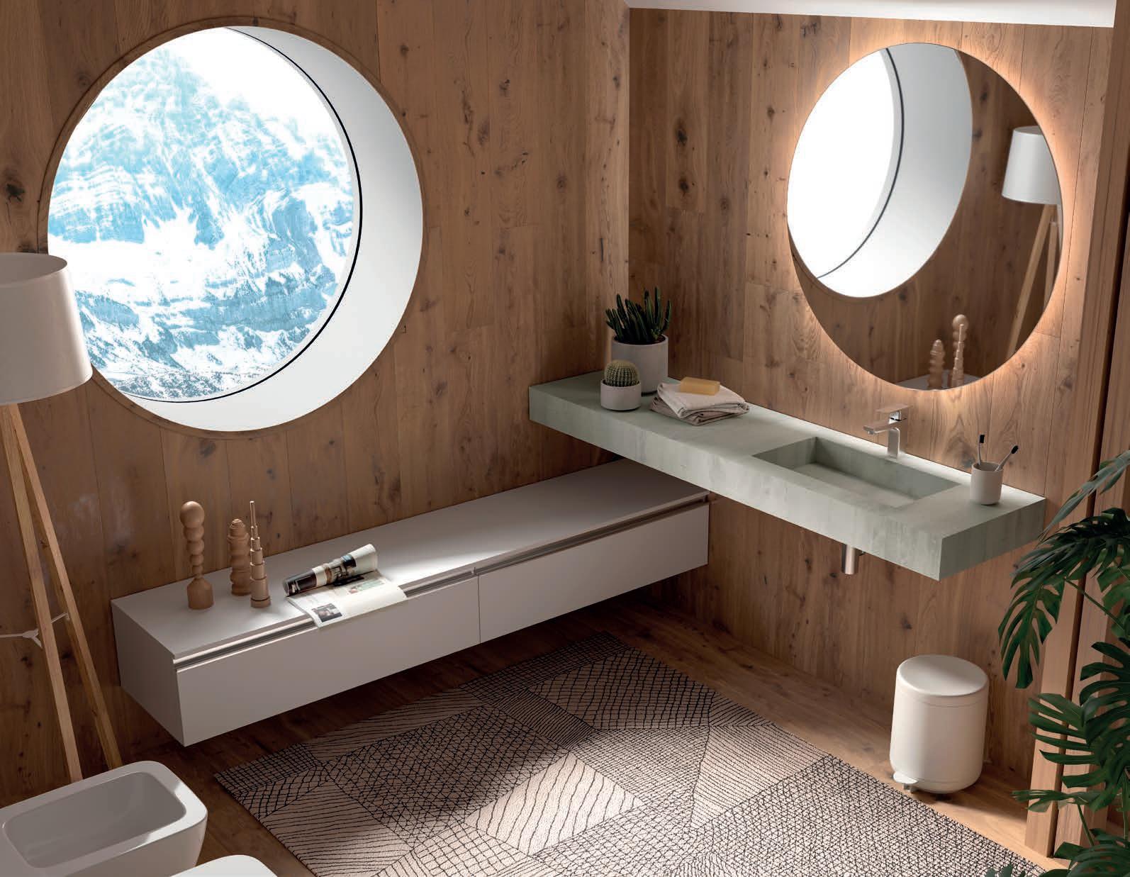 Resistant to cleaning products and disinfectants Bespoken Dirt repellent Lock brake Without handle Exterior handle integrated handle Reversible Runners Grass Runners Hettich Spacer included Under sink insert drawer Push system drawers Push system doors Multilayer laminated board Metal drawer Total extraction Extraction plus Wooden drawer MDF board Particle board Natural wood finish Matt lacquer finish Gloss lacquer finish Laminate board finish Boardwith 3D finish No need for drilling Hard-wearing adhesive fixing IP 44 Horizontal/ Vertical Mirror with fixing Low consumption Backlit mirror Work lighting Sensor on/off Sensor antifog Rotating mirror