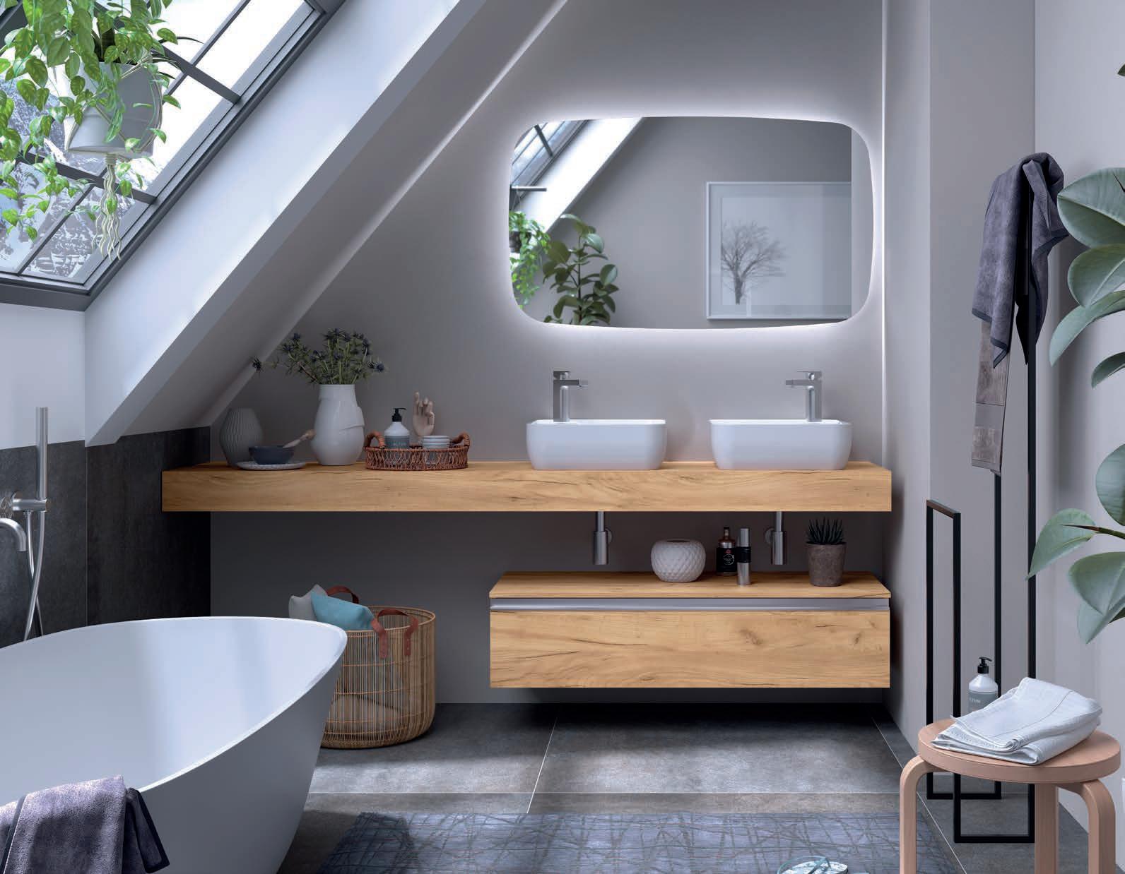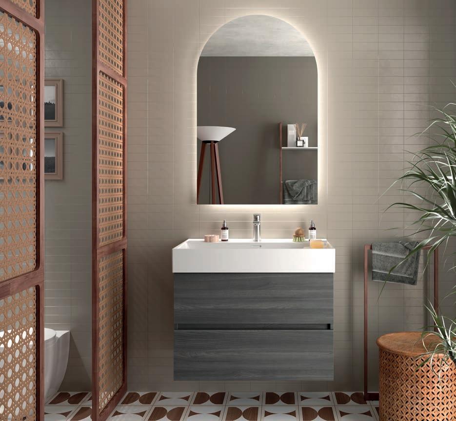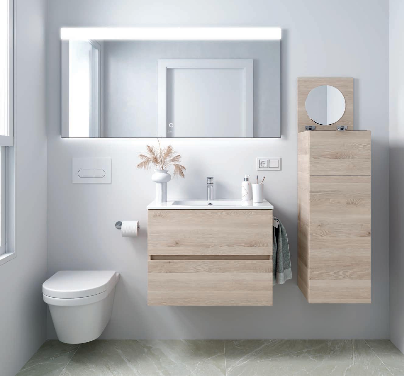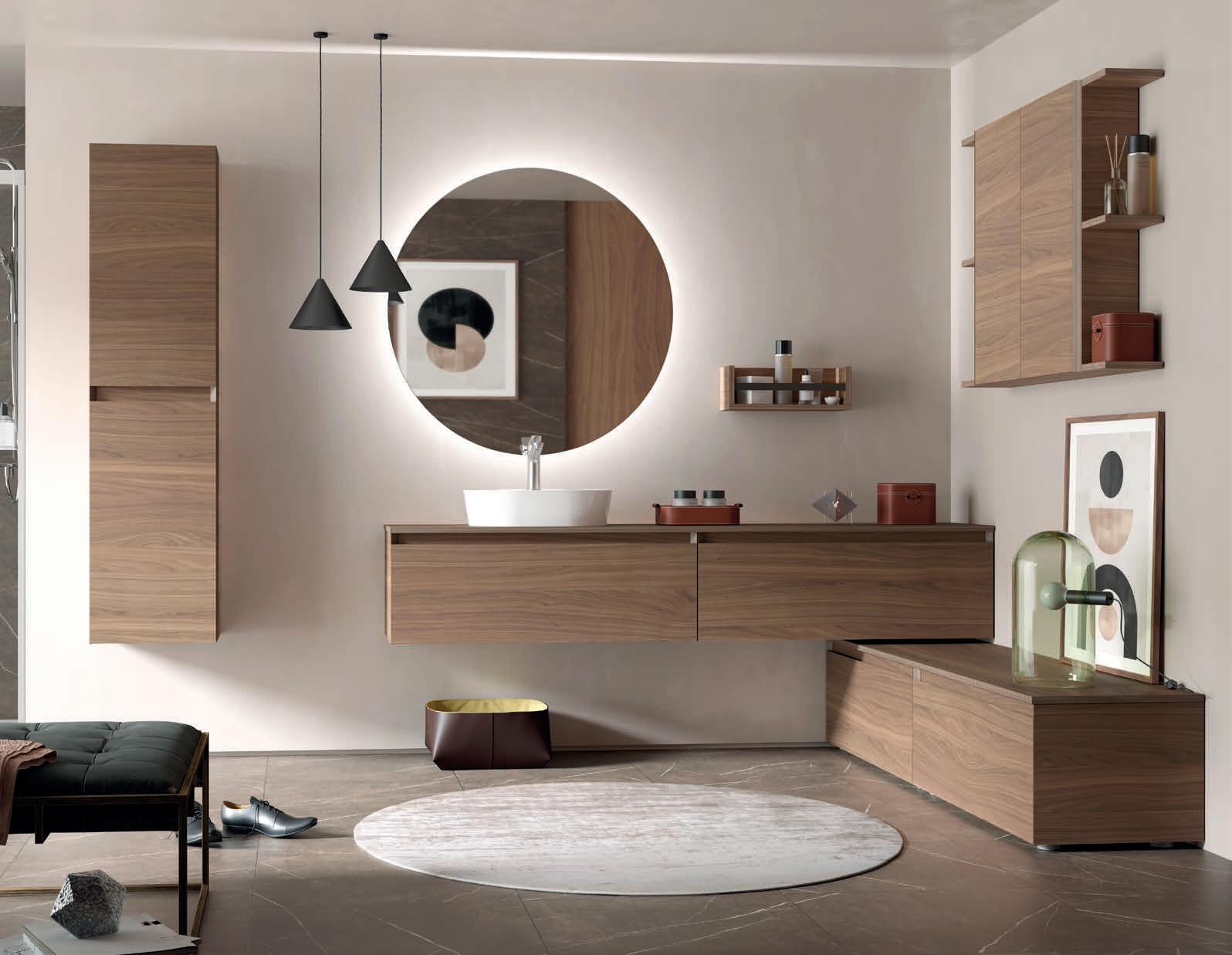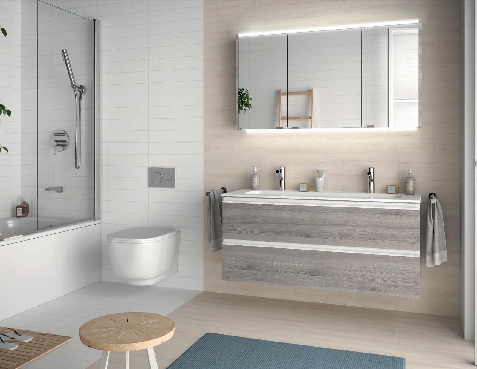 Resistant to cleaning products and disinfectants Bespoken Dirt repellent Lock brake Without handle Exterior handle integrated handle Reversible Runners Grass Runners Hettich Spacer included Under sink insert drawer Push system drawers Push system doors Multilayer laminated board Metal drawer Total extraction Extraction plus Wooden drawer MDF board Particle board Natural wood finish Matt lacquer finish Gloss lacquer finish Laminate board finish Boardwith 3D finish No need for drilling Hard-wearing adhesive fixing IP 44 Horizontal/ Vertical Mirror with fixing Low consumption Backlit mirror Work lighting Sensor on/off Sensor antifog Rotating mirror