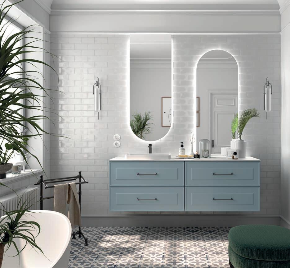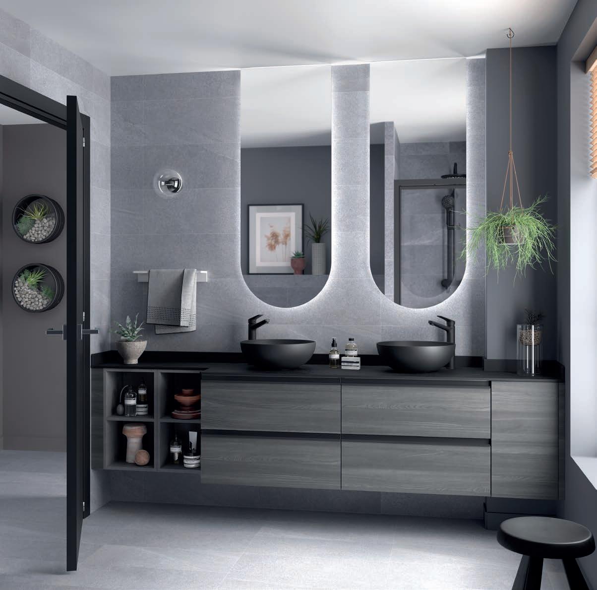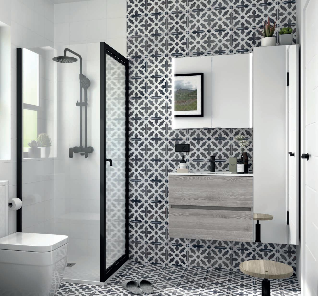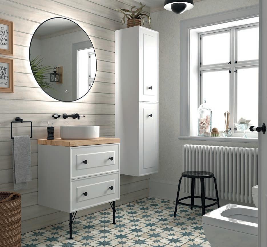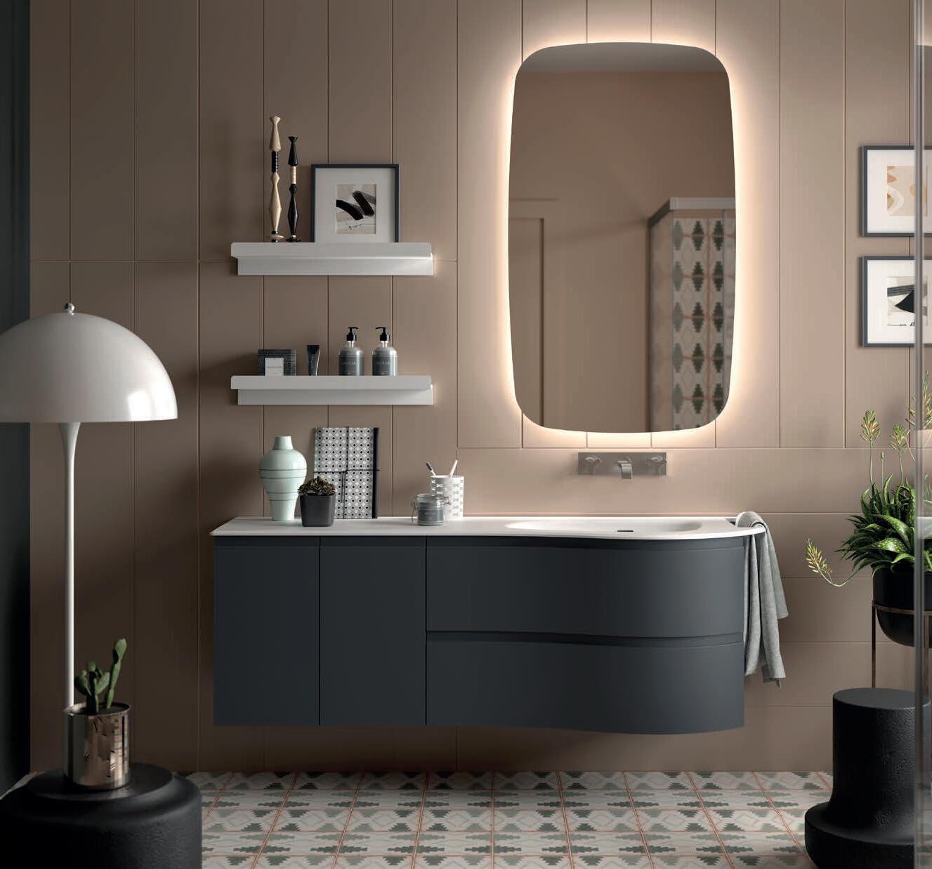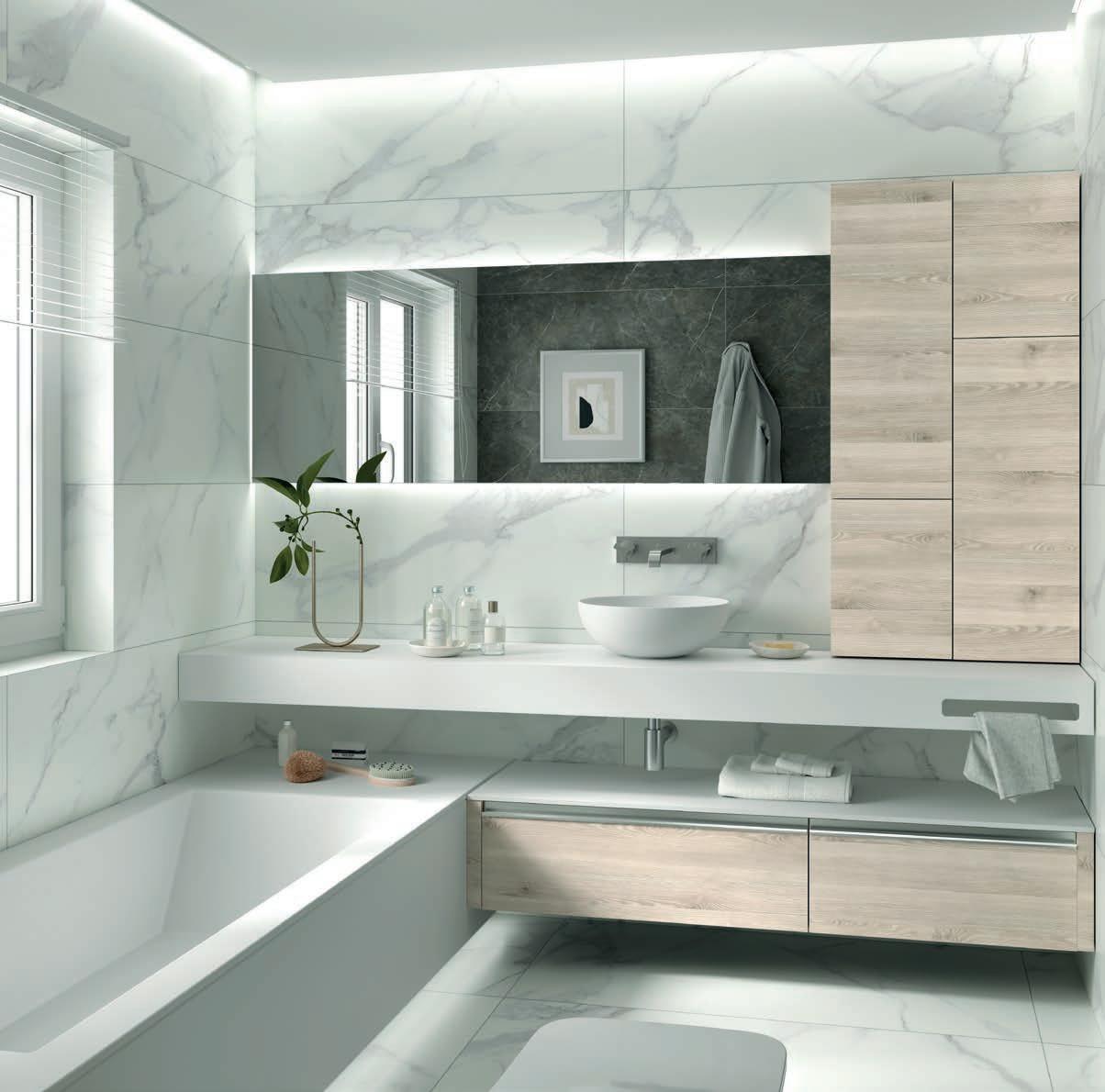 Resistant to cleaning products and disinfectants Bespoken Dirt repellent Lock brake Without handle Exterior handle integrated handle Reversible Runners Grass Runners Hettich Spacer included Under sink insert drawer Push system drawers Push system doors Multilayer laminated board Metal drawer Total extraction Extraction plus Wooden drawer MDF board Particle board Natural wood finish Matt lacquer finish Gloss lacquer finish Laminate board finish Boardwith 3D finish No need for drilling Hard-wearing adhesive fixing IP 44 Horizontal/ Vertical Mirror with fixing Low consumption Backlit mirror Work lighting Sensor on/off Sensor antifog Rotating mirror