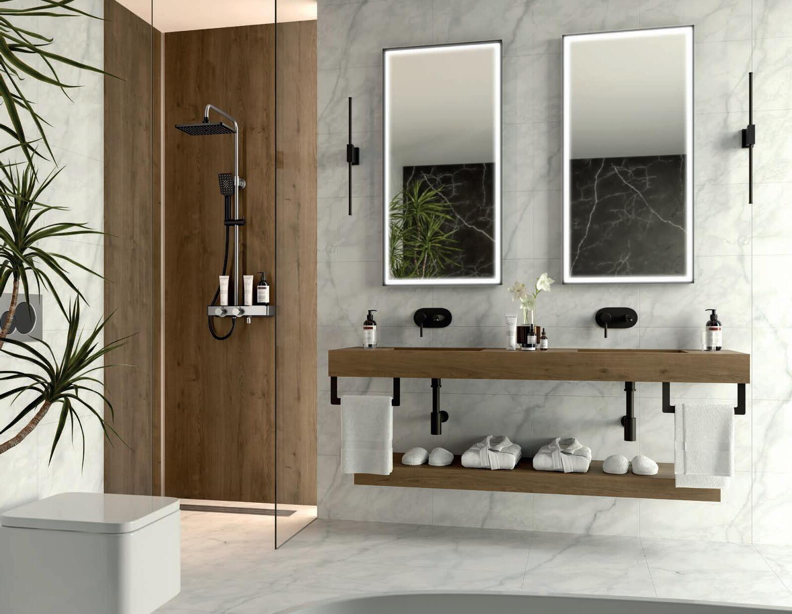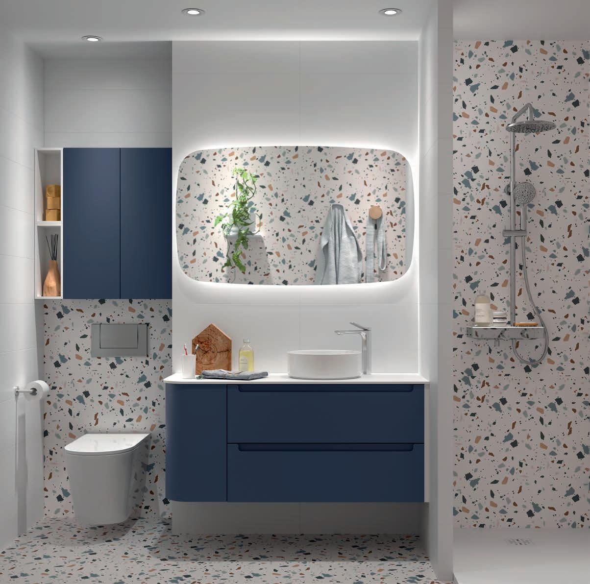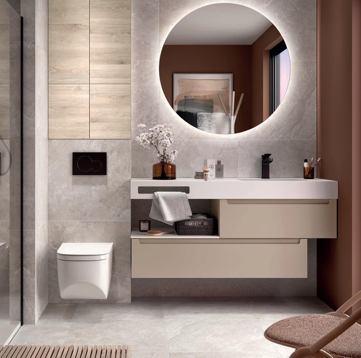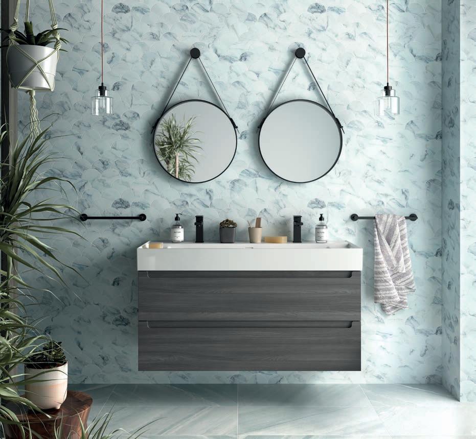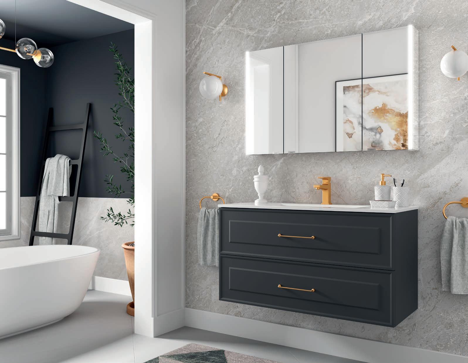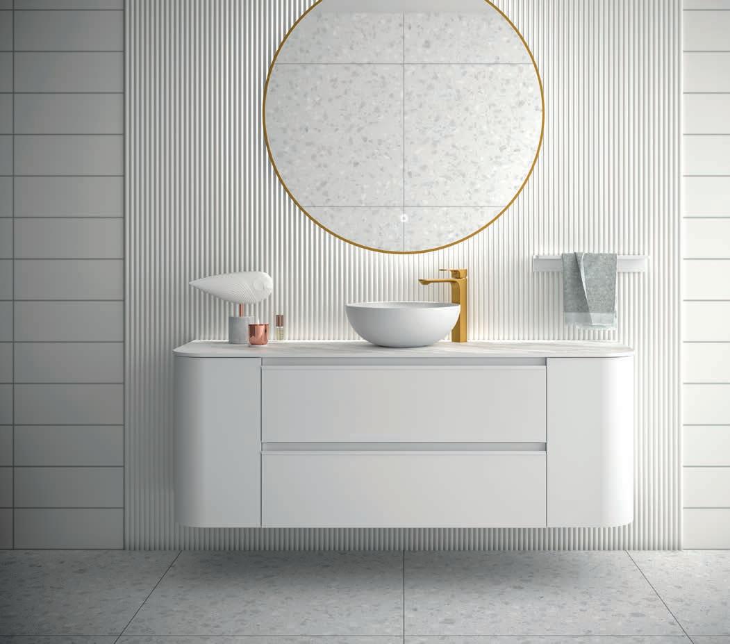 Resistant to cleaning products and disinfectants Bespoken Dirt repellent Lock brake Without handle Exterior handle integrated handle Reversible Runners Grass Runners Hettich Spacer included Under sink insert drawer Push system drawers Push system doors Multilayer laminated board Metal drawer Total extraction Extraction plus Wooden drawer MDF board Particle board Natural wood finish Matt lacquer finish Gloss lacquer finish Laminate board finish Boardwith 3D finish No need for drilling Hard-wearing adhesive fixing IP 44 Horizontal/ Vertical Mirror with fixing Low consumption Backlit mirror Work lighting Sensor on/off Sensor antifog Rotating mirror