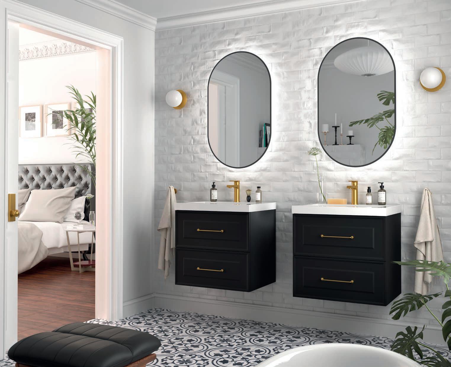 COD. DESCRIPTION £ COMPOSITION 1370 INTENSE 1 91370 Wall hung vanity MOMENT 600 Intense 2 soft close drawers 598 x 540 x 452 mm 1570 2 91406 Wall hung vanity MOMENT 600 Intense 2 doors with soft close 598 x 540 x 452 mm 1421 3 91256 Top Black slate from 1401 to 1800 for vanity and storage unit, with or without faucet hole 1401 1800 x 12 x 460 mm 689 4 97655 Semi inset basins MAEL Solid surface Bicolour x 2 without bottle trap or clicker waste 502 x 44 x 310 mm 748 TOTAL PRICE OF THE FULL SET 4428 OPTIONS COD. DESCRIPTION £ 5 97601 Mirror ORLEANS 1400 horizontal with LED light, sensor (30+36 W-5700ºK.) IP 44 1400 x 700 mm 689 6 23032 Bottle trap SMART x 2 with open valve 218