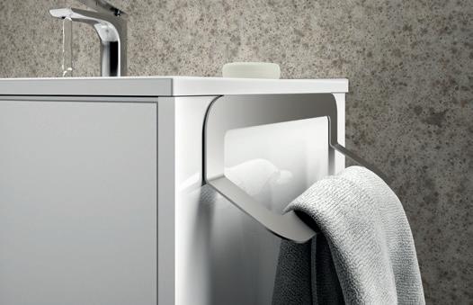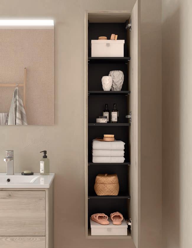 Se precisar de arrumação na sua casa de banho, use os pilares auxiliares, eles têm muita capacidade e podem ser ajustados às suas necessidades com as prateleiras reguláveis. E, claro, com fecho amortecido para que não haja choques desagradáveis.