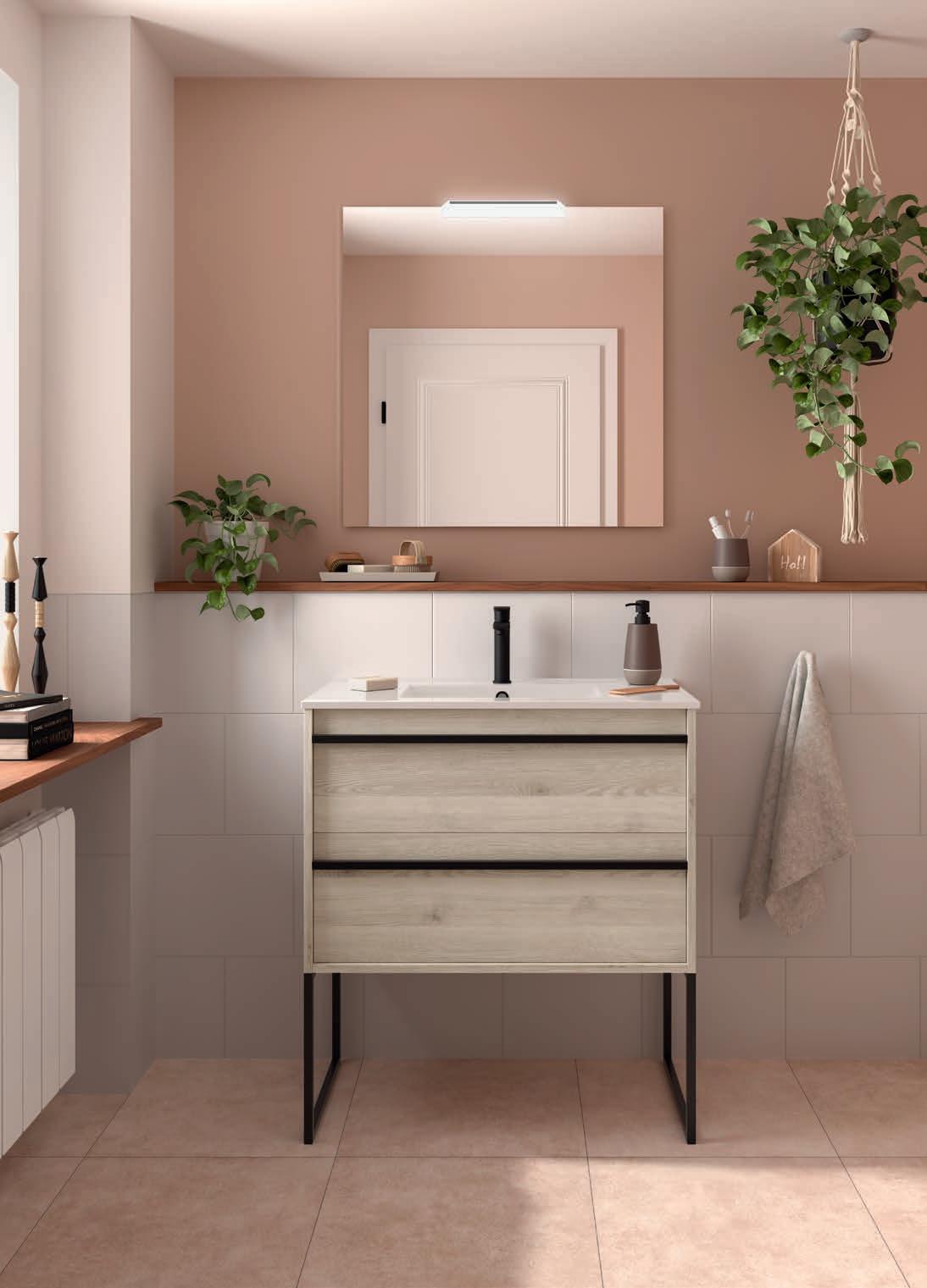 Veja Noja 800 Cod. 105478 - Conjunto móvel + tampo 800 Carvalho áfrica - 299€ Cod. 87734 - Lavatório Lokum - 226€