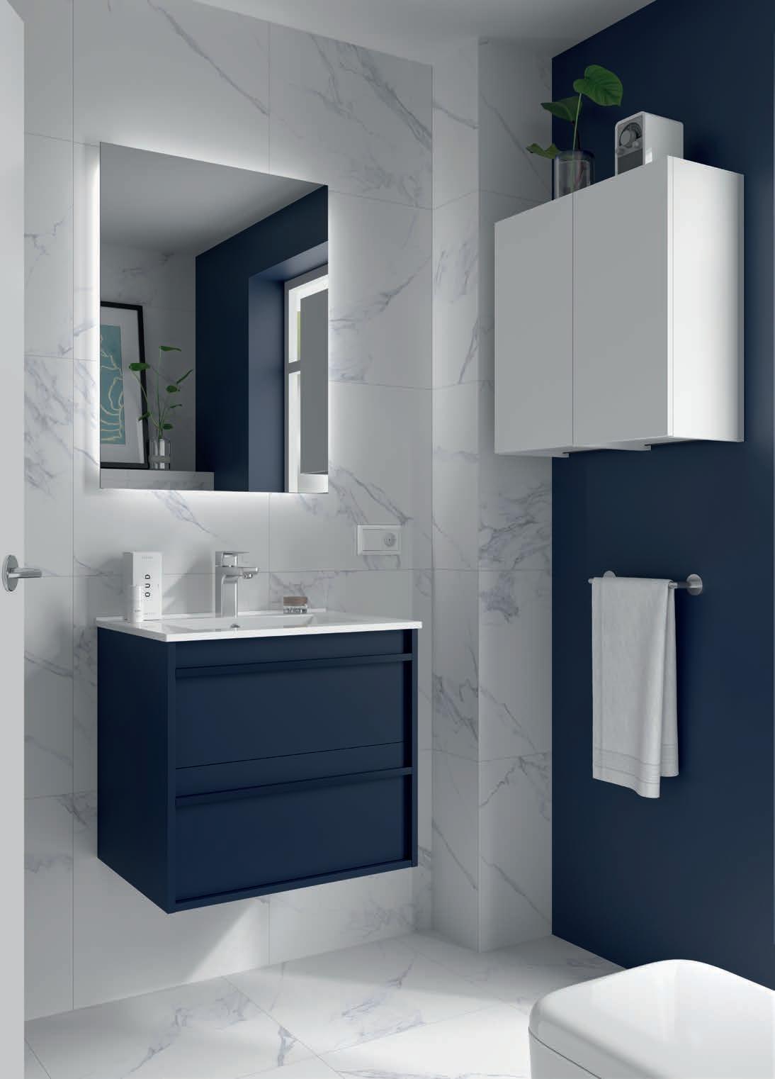 Veja Noja 850 Cod. 106262 - Conjunto móvel + lavatório 850 Blue satin - 516€ Cod. 105597 - Espelho Nora 600 - 205€