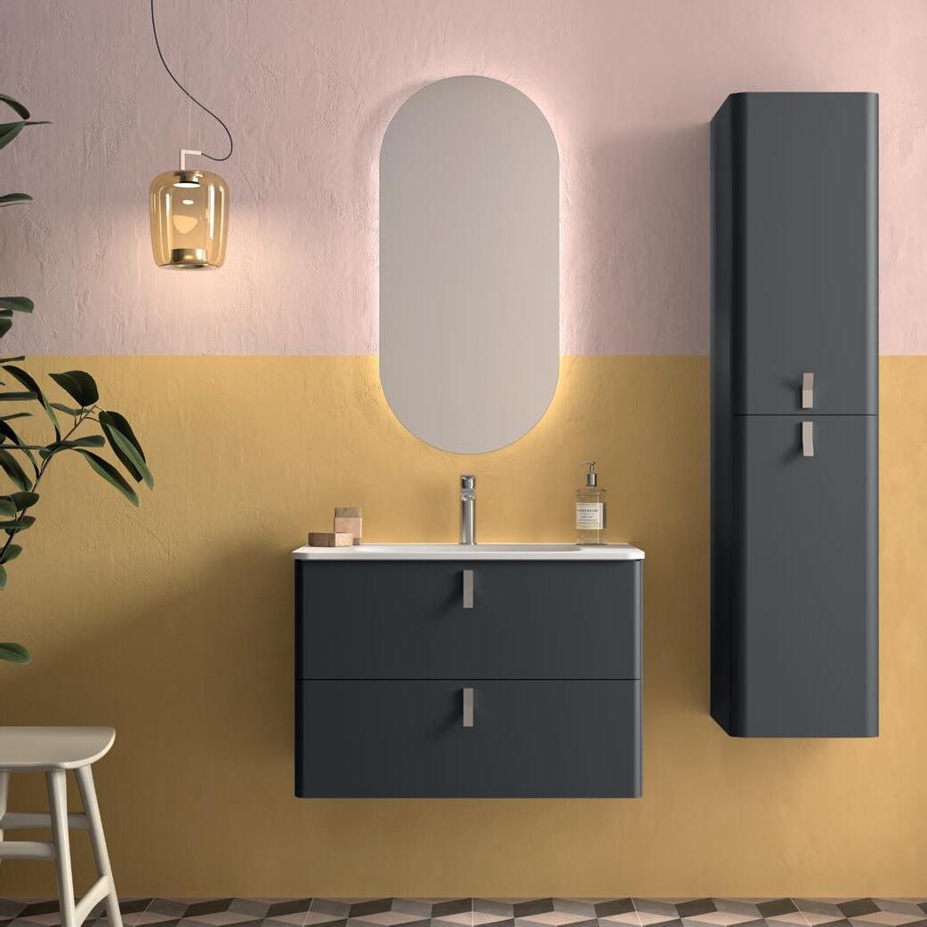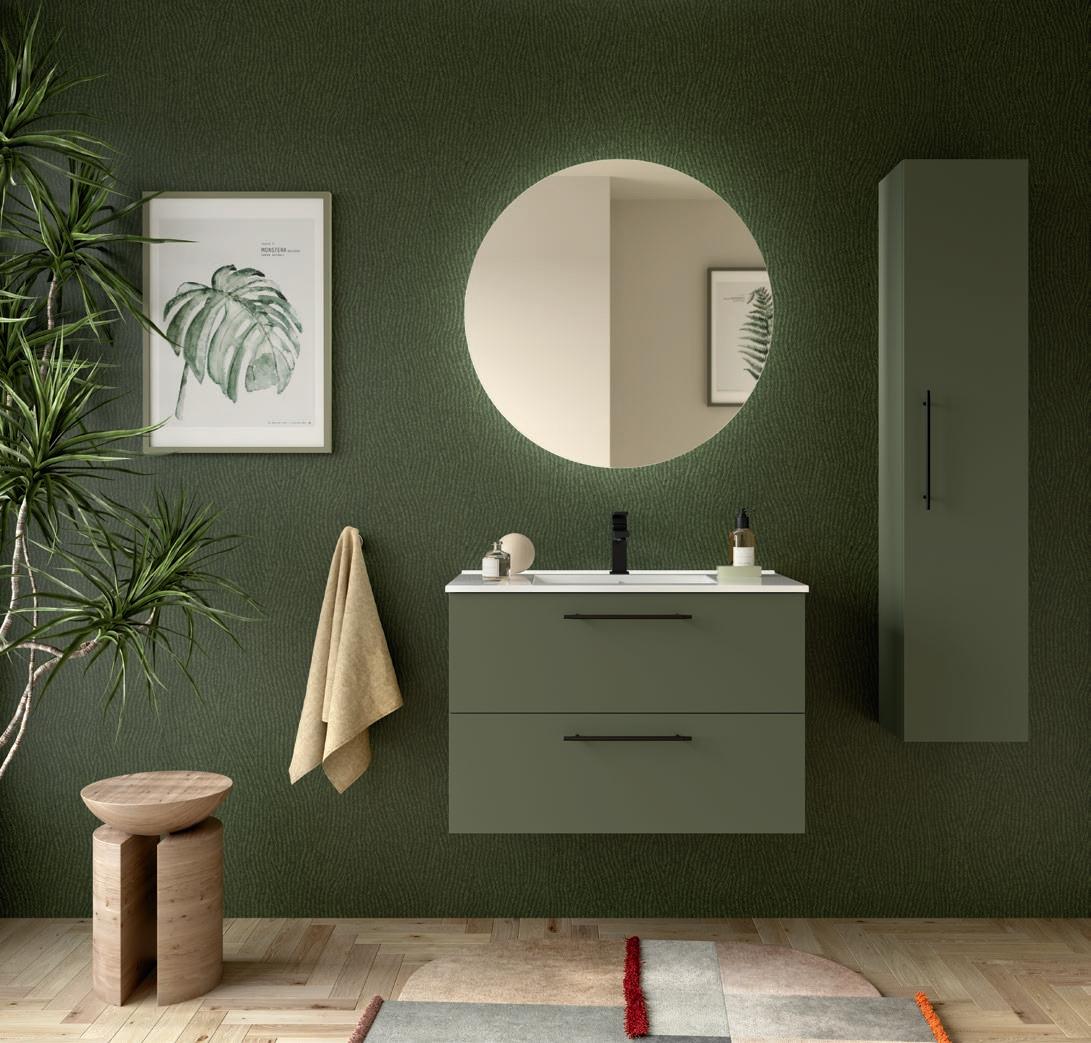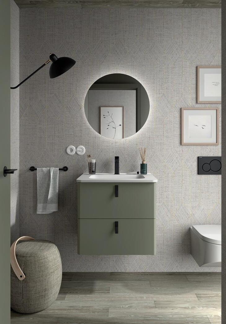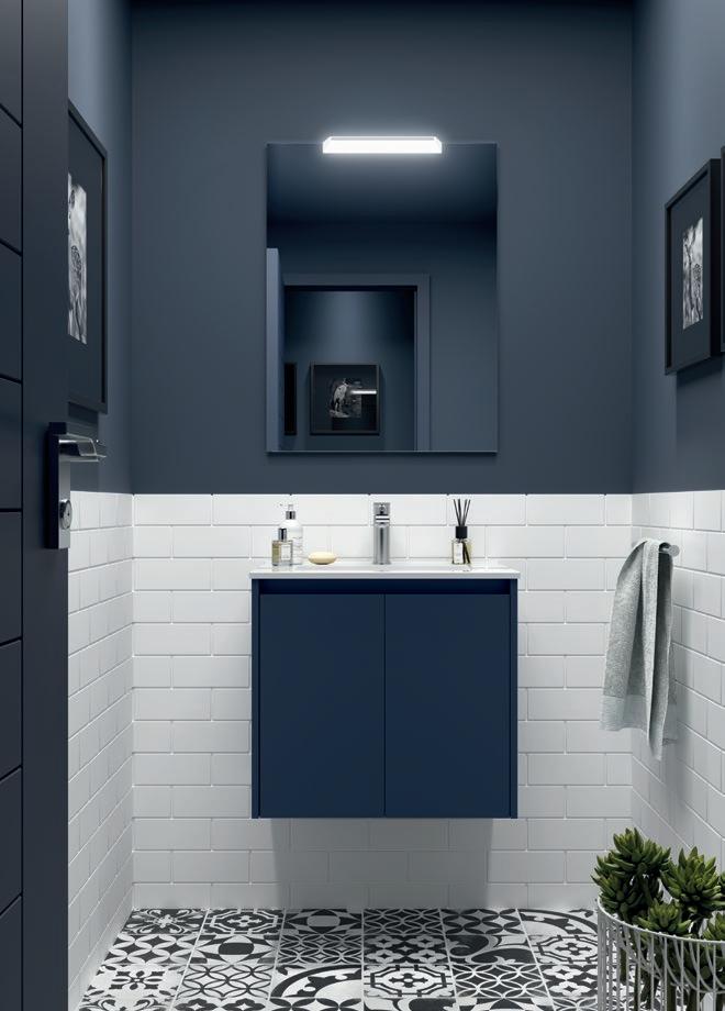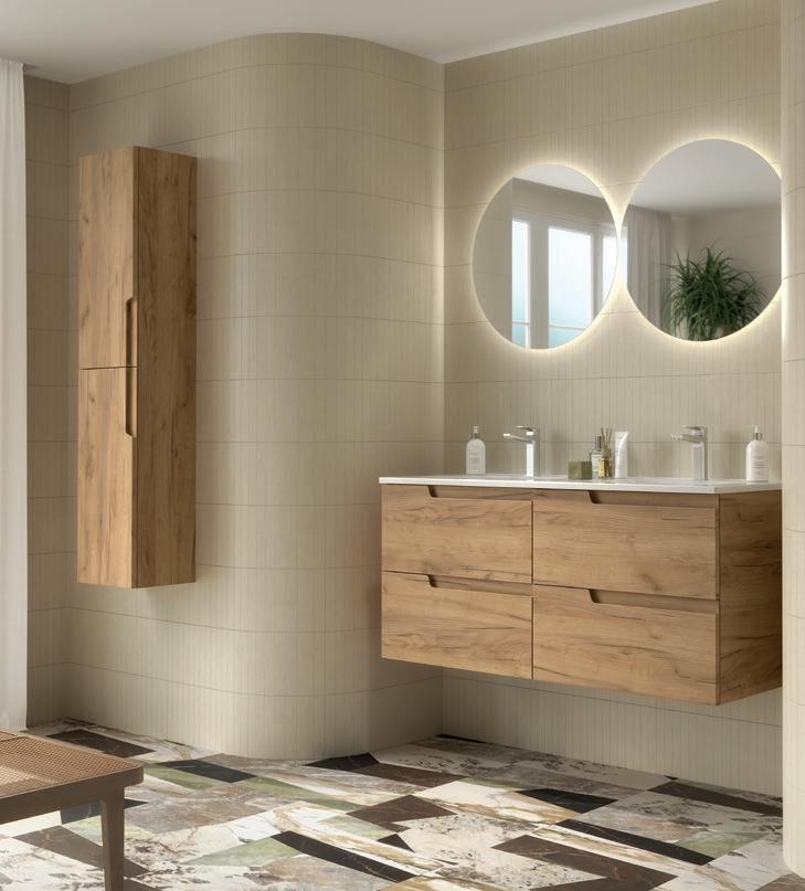 Color y personalidad con los conjuntos de mueble y encimera del mismo acabado. Un recurso para un baño que respira vitalidad