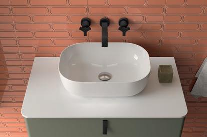 Compuesto de mueble y encimera en el acabado del mueble. Lavabo de posar no incluido. Tirador Quilt Matt black incluido.