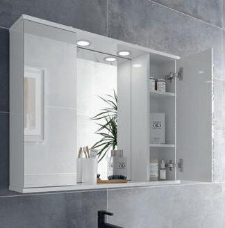 Compuesto de mueble, lavabo de porcelana, espejo. Los conjuntos de 1400 llevan lavabo de carga mineral.