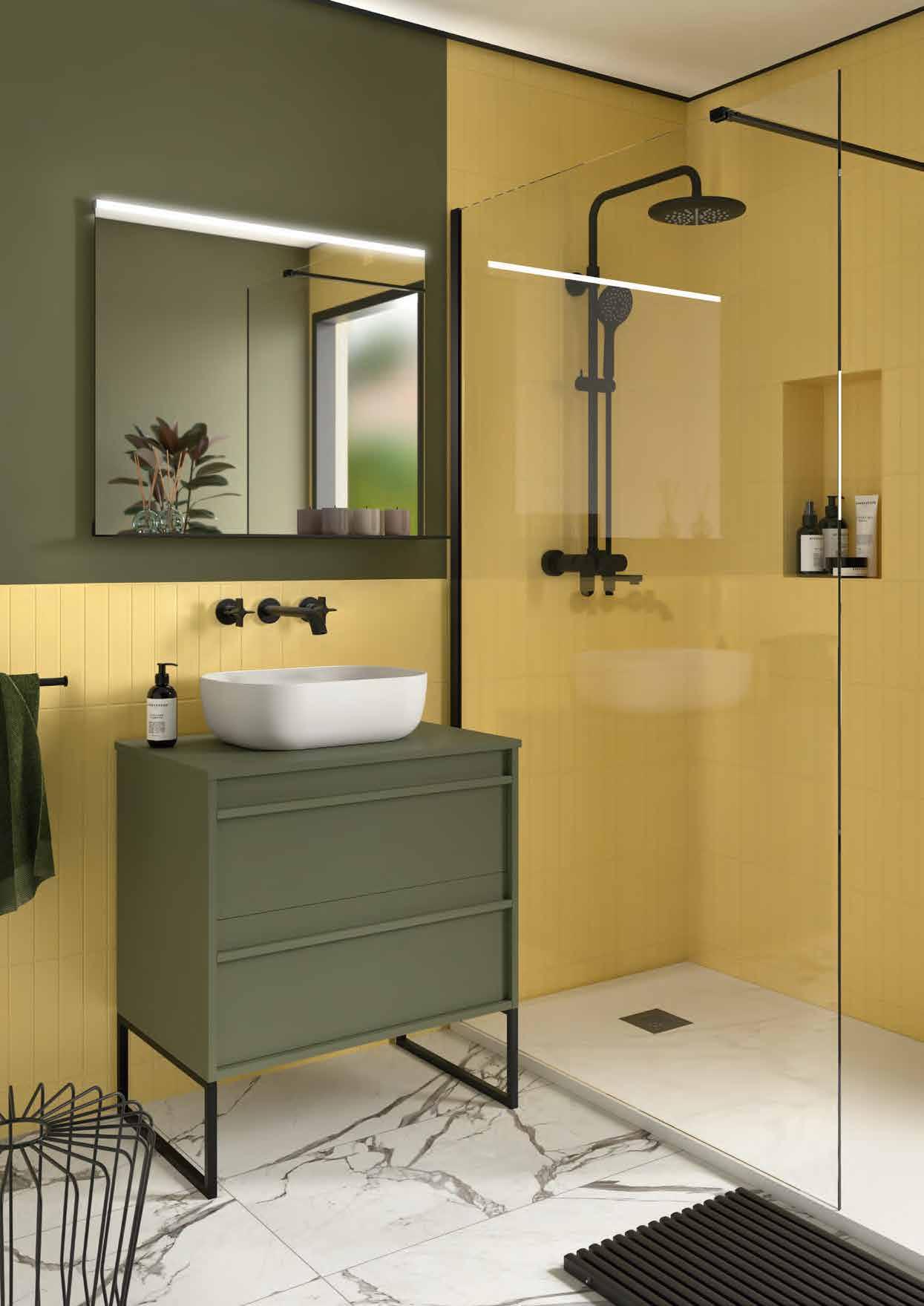 With an aluminum shelf for everyday practicality, a front light for daily routines, or ambient lighting for relaxing moments, choose the mirror that best reflects your style and turn your bathroom into a unique space.