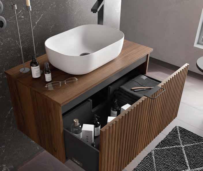 The NOJA 120 series introduces new options to help every bathroom find its perfect balance: 4 doors, 4 drawers, or a combination of 2 drawers and 2 doors. Different configurations that maximize storage capacity while adapting to both functional needs and personal style.