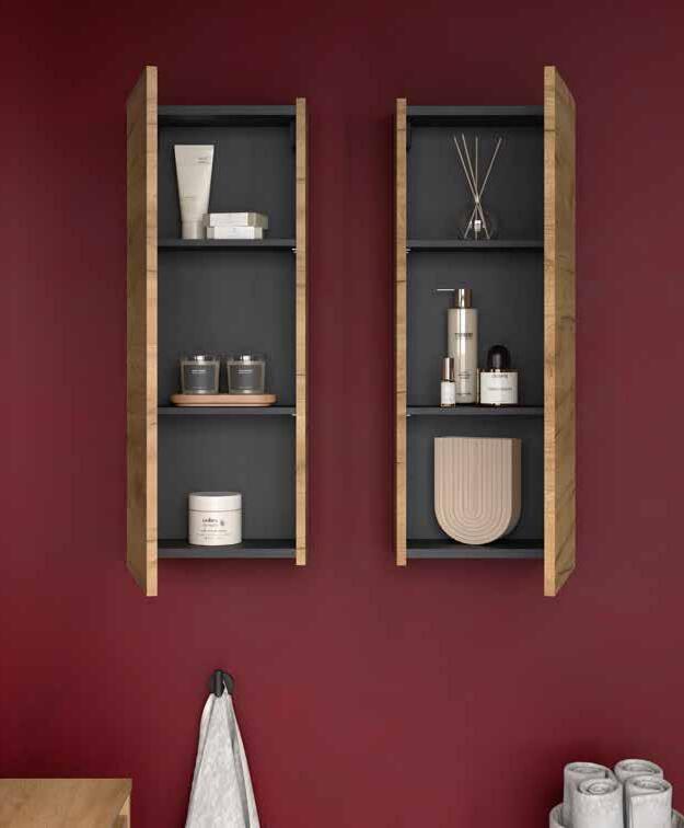 The smart solution for those who seek organization without compromising on design. With its sleek shape and generous interior capacity, it makes practical and elegant use of your bathroom’s vertical space, blending seamlessly with the rest of the collection