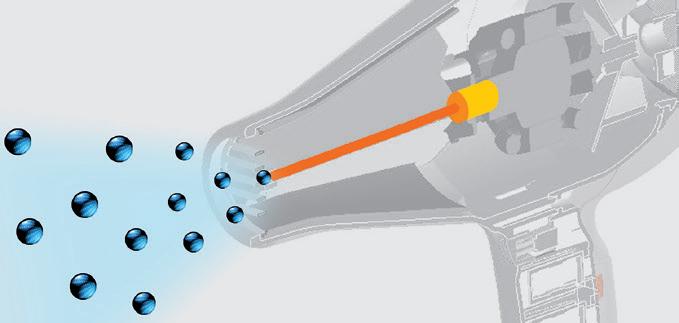 Die E.T.C.-Technologie erzeugt einen einzigartigen spiralförmigen Luftdruck, der das Haar nicht nur oberflächlich trocknet, sondern auch tief in die Haarschäfte eindringt und so für eine perfekte, ultraschnelle Trocknung sorgt.
