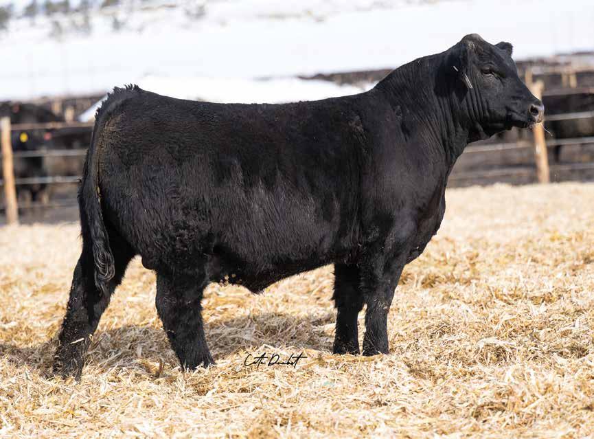 An Exchange son with plenty of visual performance, depth of body and length. He is big testicled and extremely sound on its feet and legs. The bull gets out and handles himself very well.