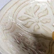 Las incrustaciones metálicas no desaparecen con el lavado normal. Para ello, se necesita un ácido cítrico especial para porcelana tipo Piedra Verde o Piedra Blanca de venta en grandes almacenes.