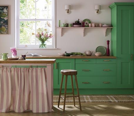 Riverbank is a vibrant, high-energy green inspired by lush waterside foliage. This bold addition to the palette works well when paired with whites, aqua blues and pale yellows.