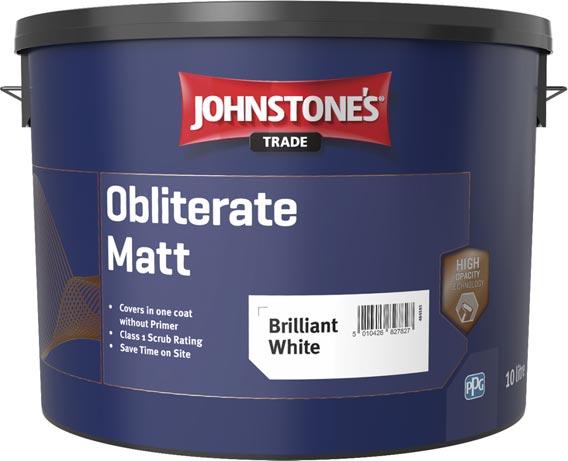 Suitable for brush, roller and even spray application, Johnstone’s Trade Obliterate Matt works on bare plaster and previously painted surfaces, delivering a premium finish and offering flexibility without compromise. It is available in Brilliant White and can be tinted to thousands of colours.