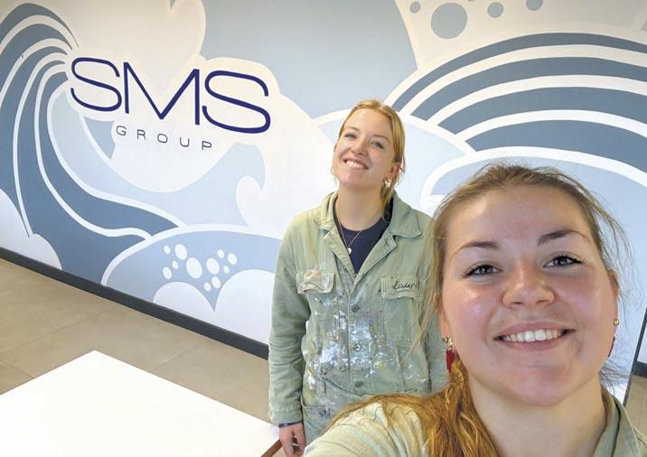 AWARD-WINNING DESIGN duo, Lauren and Chloe Piper (known as @2sistersuk), recently partnered with Bradite to refresh the SMS Group headquarters, using One Can to create a nautical-themed mural. Bradite’s all-in-one primer, stain block and finish was the ideal, fastdrying product to facilitate quick completion, without compromising on the quality of finish.