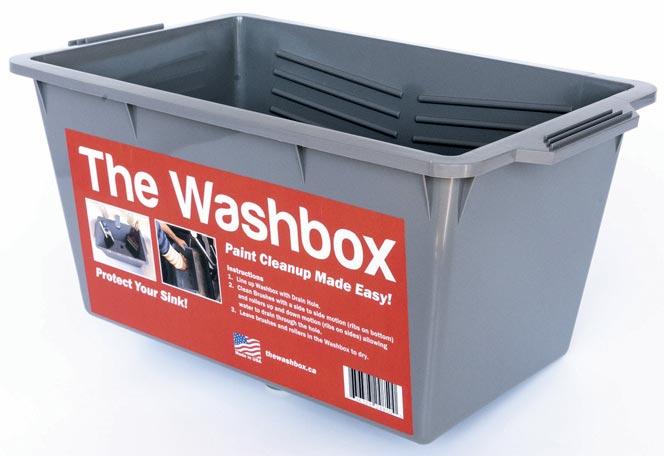 The Washbox is a unique tool designed to fit in most sinks and save time when cleaning paint brushes, rollers and painting tools. In addition to saving cleanup time, there is an added bonus of protecting the sink from spatters and stains! Constructed of sturdy plastic, ridges on the side and bottom to help dislodge paint residue, and a drain hole at the bottom directs water down the drain keeping the sink fully protected. A plug allows you to soak items before and after cleaning, items can then be left in the Washbox to dry.