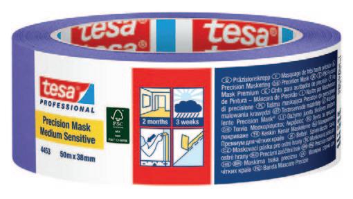 tesa has expanded its professional range for painters and craftspeople with several new products. The focus is on three innovations: 2in1 Professional 4460, Silicone Precision Masking Tape 4455, and the self-adhesive protective paper Professional 74922 helping painters and craftspeople achieve high-quality results despite increasing workloads and growing demand for renovation work.