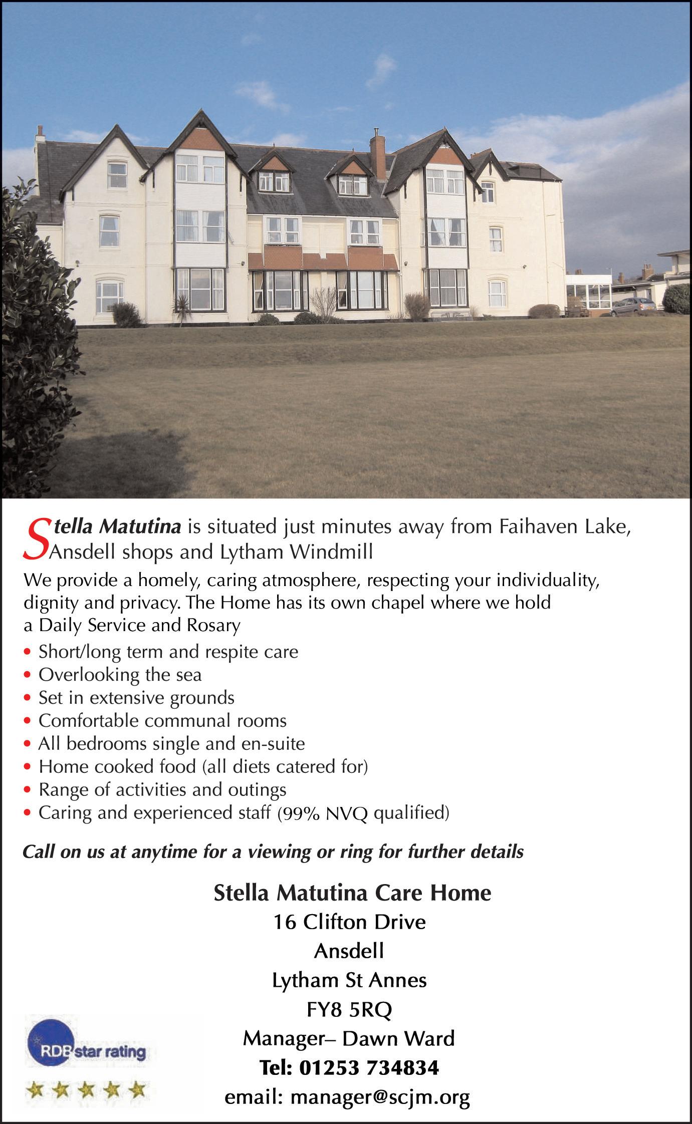 – ser ving Schools, Business and Homes Our advertisers are great supporters of the Lancaster Voice, so please help them by supporting their businesses To advertise please contact Charlotte on 01440 730399 or email charlotter@cathcom.org Two amazing care homes. One unwavering standard. Evermorecare.com The way a perfect care home should be. For a brochure or tour, please call Chorley Astley View, Euxton Lane PR7 1PS. Tel 01257 444860 Lancaster Ashton Manor, Scotforth Road LA1 4XN. Tel 01524 566007