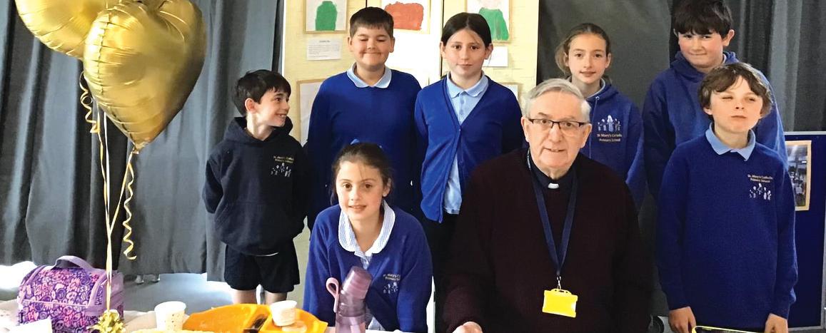 Special assemblies followed in our two schools before a jubilee Mass at St Leonard’s on Friday, followed by a party in the main hall at St Mary’s Primary School. We were joined at Mass by Canon Patrick Harney, who is the sole survivor of the priests present at Father Tim’s ordination at