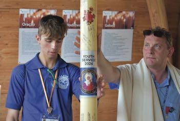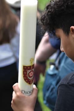 Bottom: Youth Ministry Team lights candle to mark Lourdes Centenary Pilgrimage