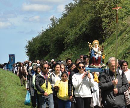 Top Left: Pilgrims walk the Holy Mile in Walsingham