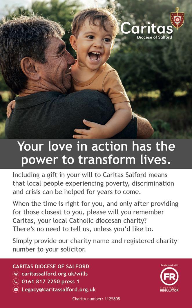 If you’d like to support Caritas Salford by making a donation, leaving a gift in your Will, volunteering your time, or sharing information about the charity’s services locally, please visit www.caritassalford.org.uk where you can also read more about the impact of its work. For more information, contact info@caritassalford.org.uk or 0161 817 2250.
