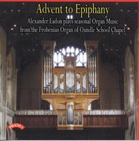 Magnificat sexti toni; Buxtehude Chorale Fantasia on ‘Wie schön leuchtet der Morgenstern’; Bach Nun komm, der Heiden Heiland BWV659, BWV660 & BWV661; Guilmant Introduction et variations sur un ancien Noël polonais; Flor Peeters Heer Jezus heft een hofken; Gerhard Krapf Veni, Emmanuel; Helmut Walcha Chorale Prelude on ‘Den die Hirten lobten sehre’; Manz Wie schön leuchtet; Blatchly Three versets on ‘Away in a manger’; Edmundson Toccata-Prelude IV ‘Vom Himmel hoch’.
