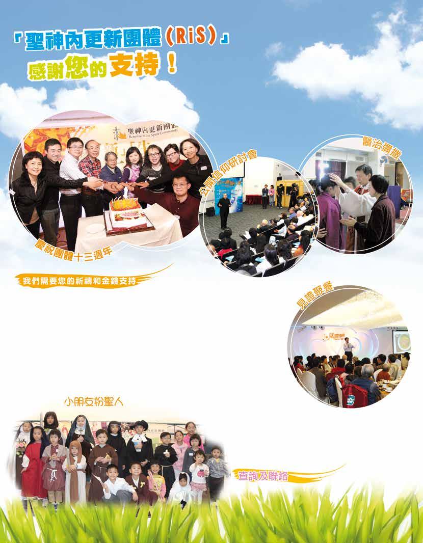 在此呼籲有心人士繼續慷慨支持我們在聖神內的事業。我們深信團體在天 父的天國計劃中有獨特的角色—在東九龍這地區作信仰基地,把聖神的火 傳播出去。