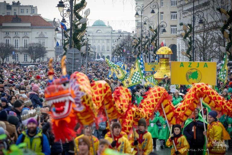 A massive crowd followed the three Magi in the Polish capital with hundreds of kids marching dressed as knights, representatives of all continents and angels.