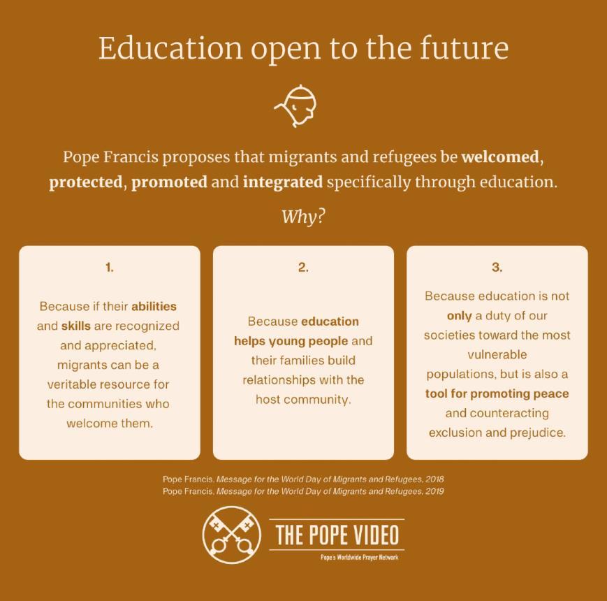 Education, the Pope underscored, opens the doors to a better future. "In this way," he explained, "migrants and refugees can contribute to society, either in their new country or in their country of origin, should they decide to return."